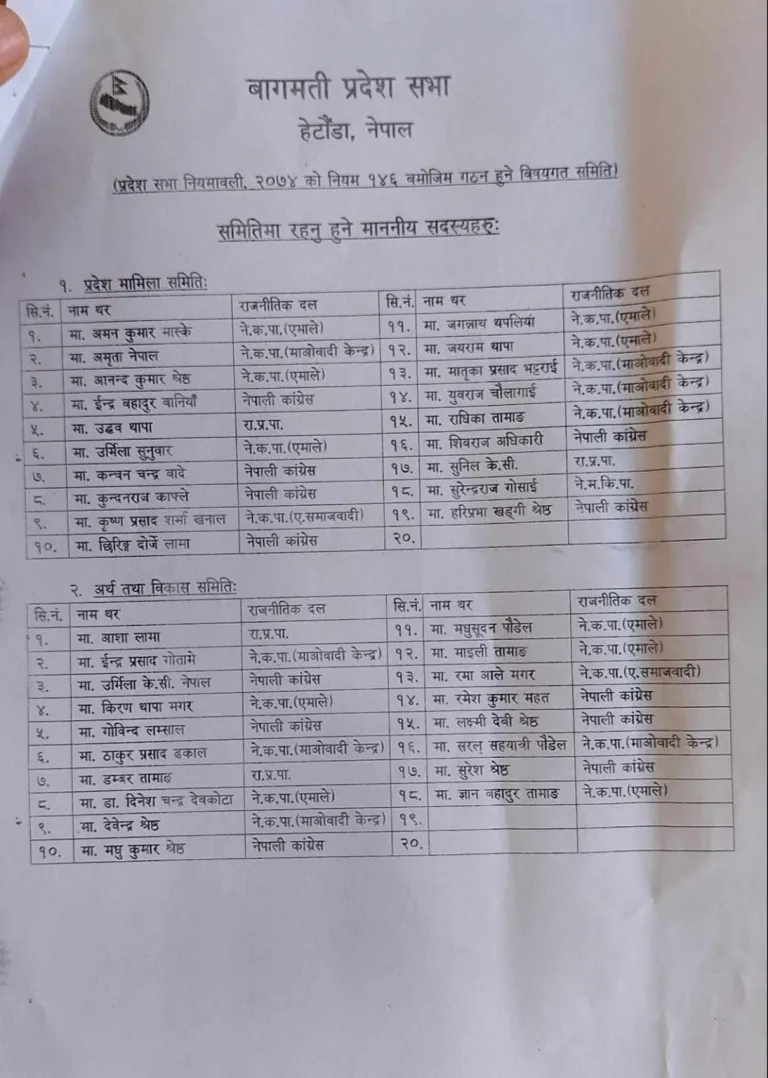 बागमती प्रदेश सभामा रहने पाँचवटा समिति गठन भएका छन् ।