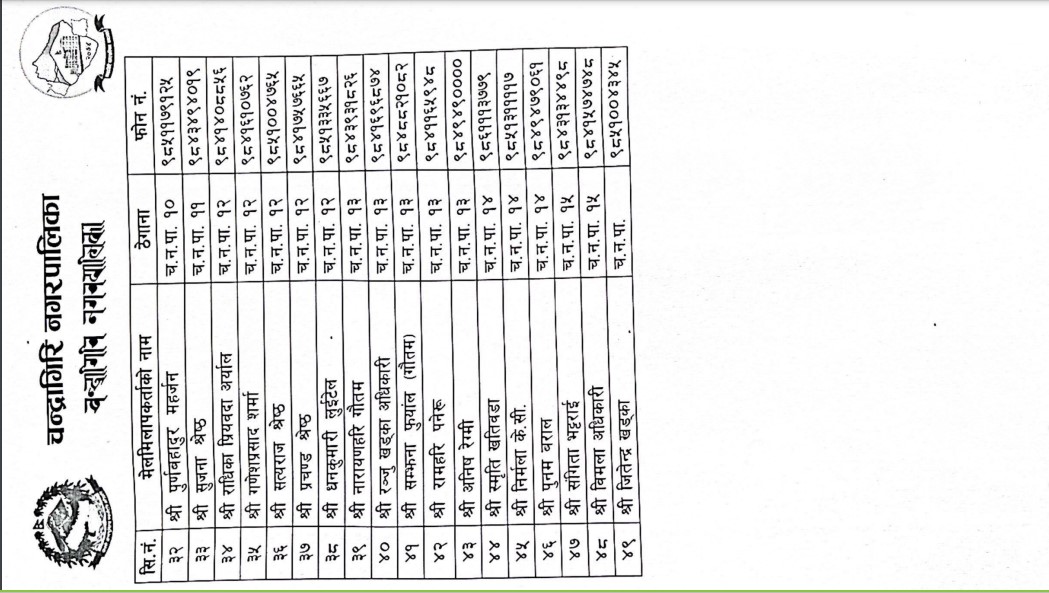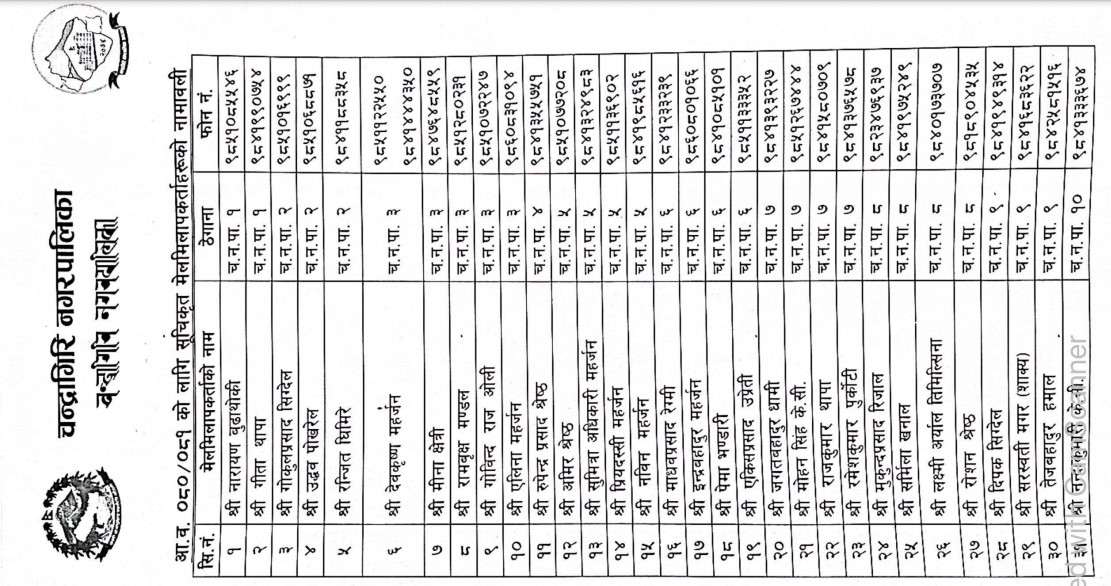 चन्द्रागिरि नगरले सार्वजनिक गर्यो सूचीकृत मेलमिलापकर्ताको नाम, कुनै वडामा १ जना कुनैमा ५ !