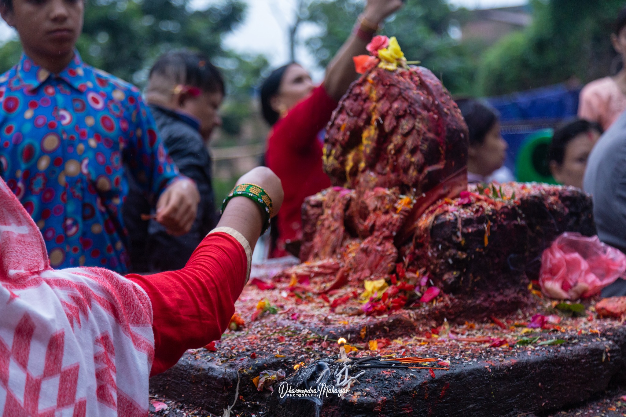 झमझम पानीका बीच श्रद्धालुहरू पुरूषोत्तममास महिनामा भगवान विष्णुको प्रथम अवतारको दर्शन गर्न लामबद्ध देखिन्थे ।