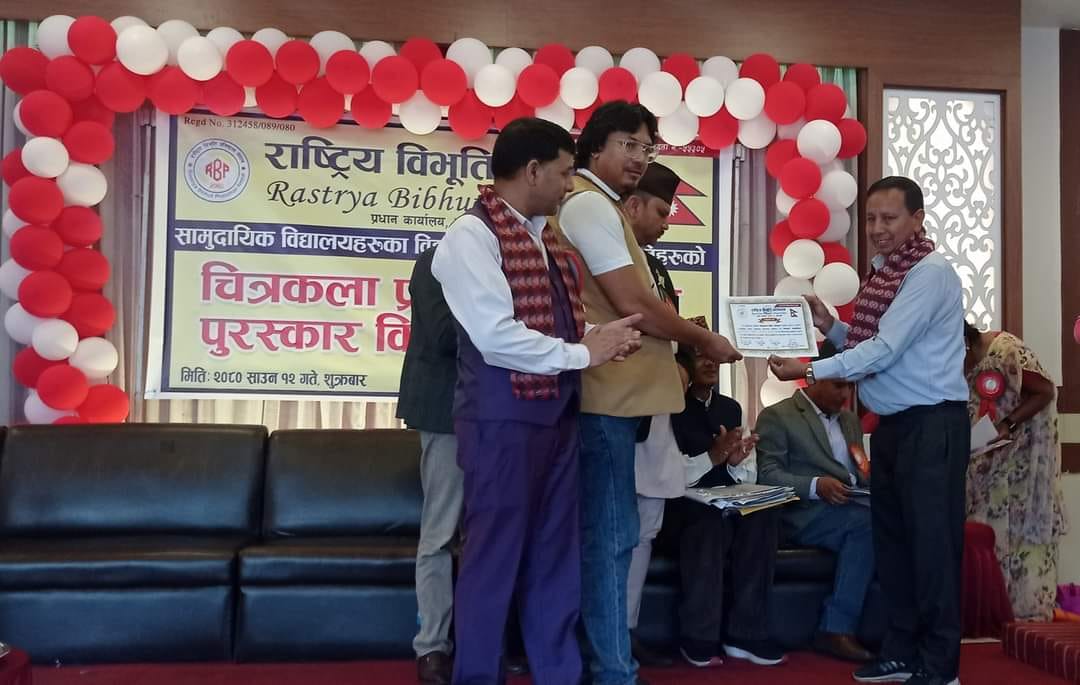 राष्ट्रिय विभूति प्रतिष्ठानद्वारा आयाेजित चित्रकला प्रतियाेगितामा विष्णुदेवी शिक्षा सदनका सन्तोष प्रथम