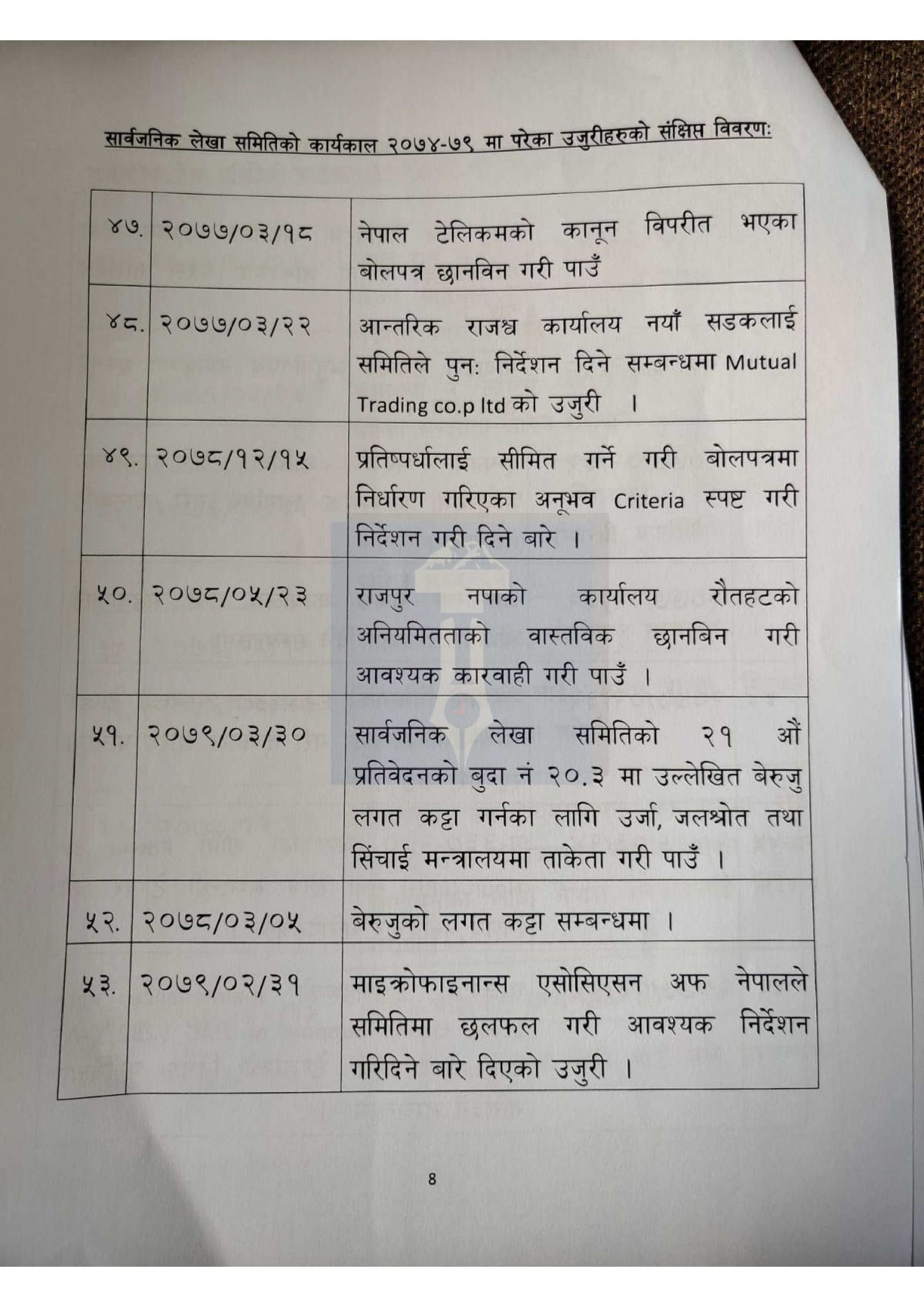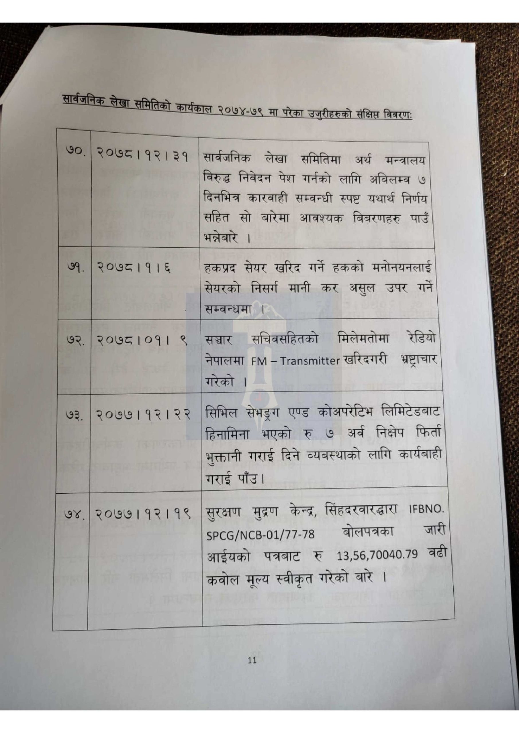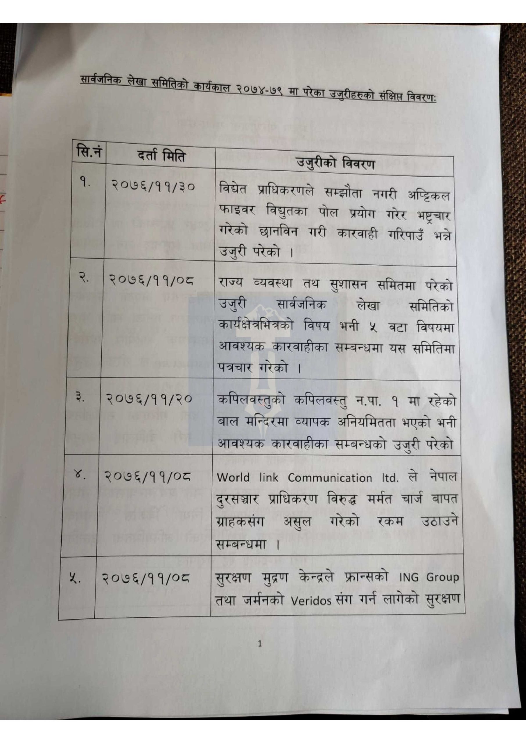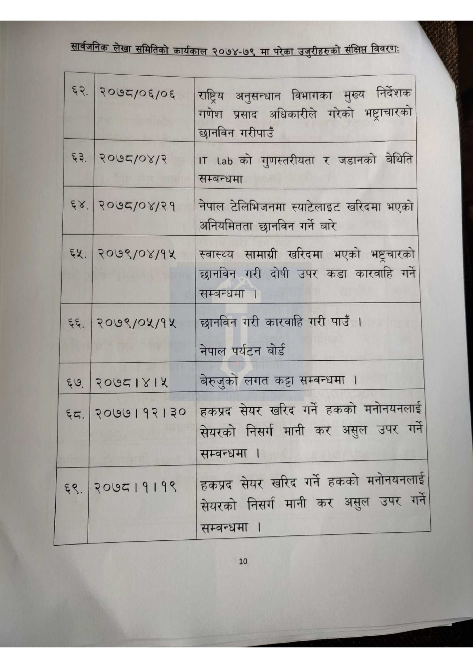 हेर्नुहोस् लेखा समितिमा परेका १ सय उजुरीको विवरण>