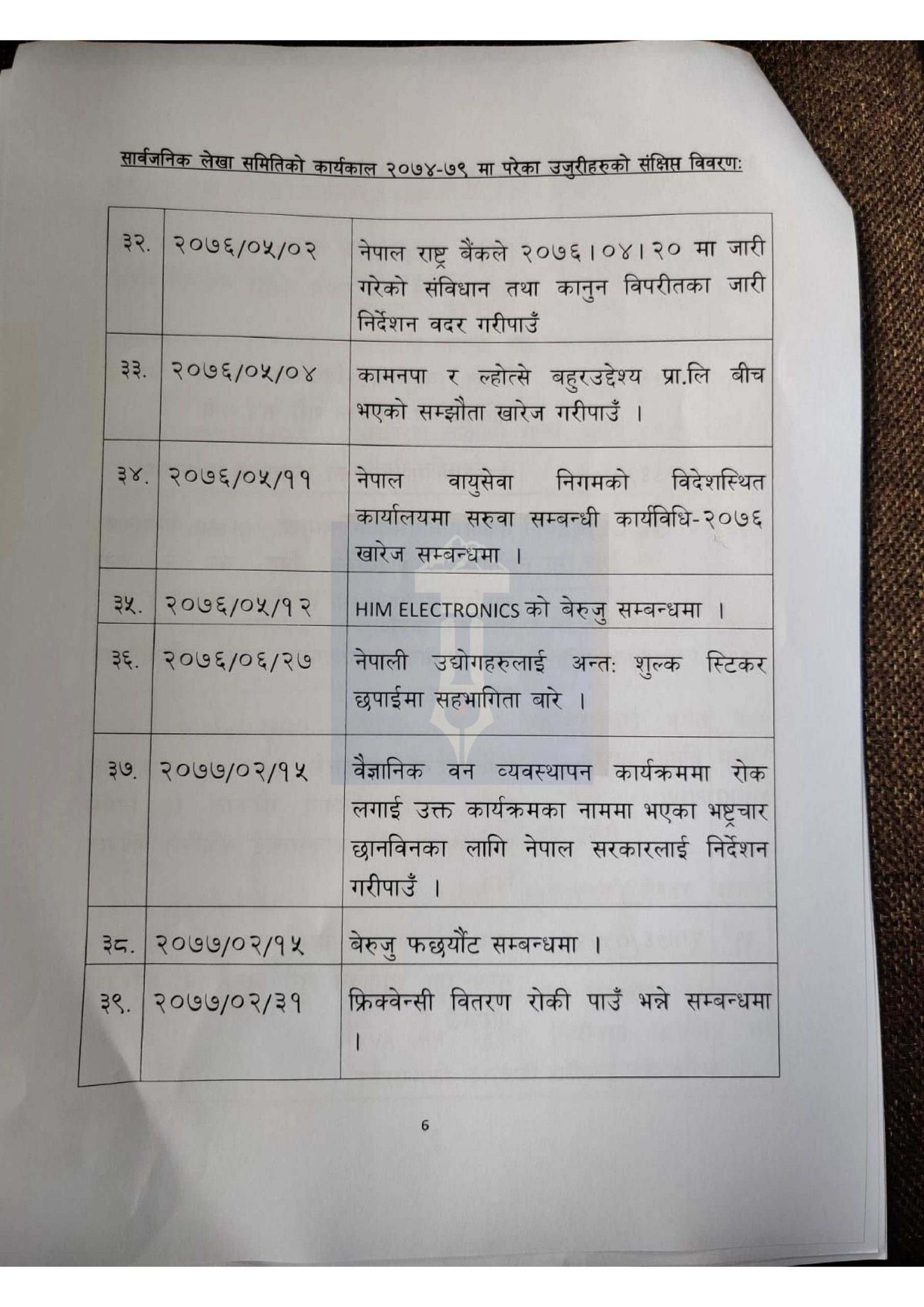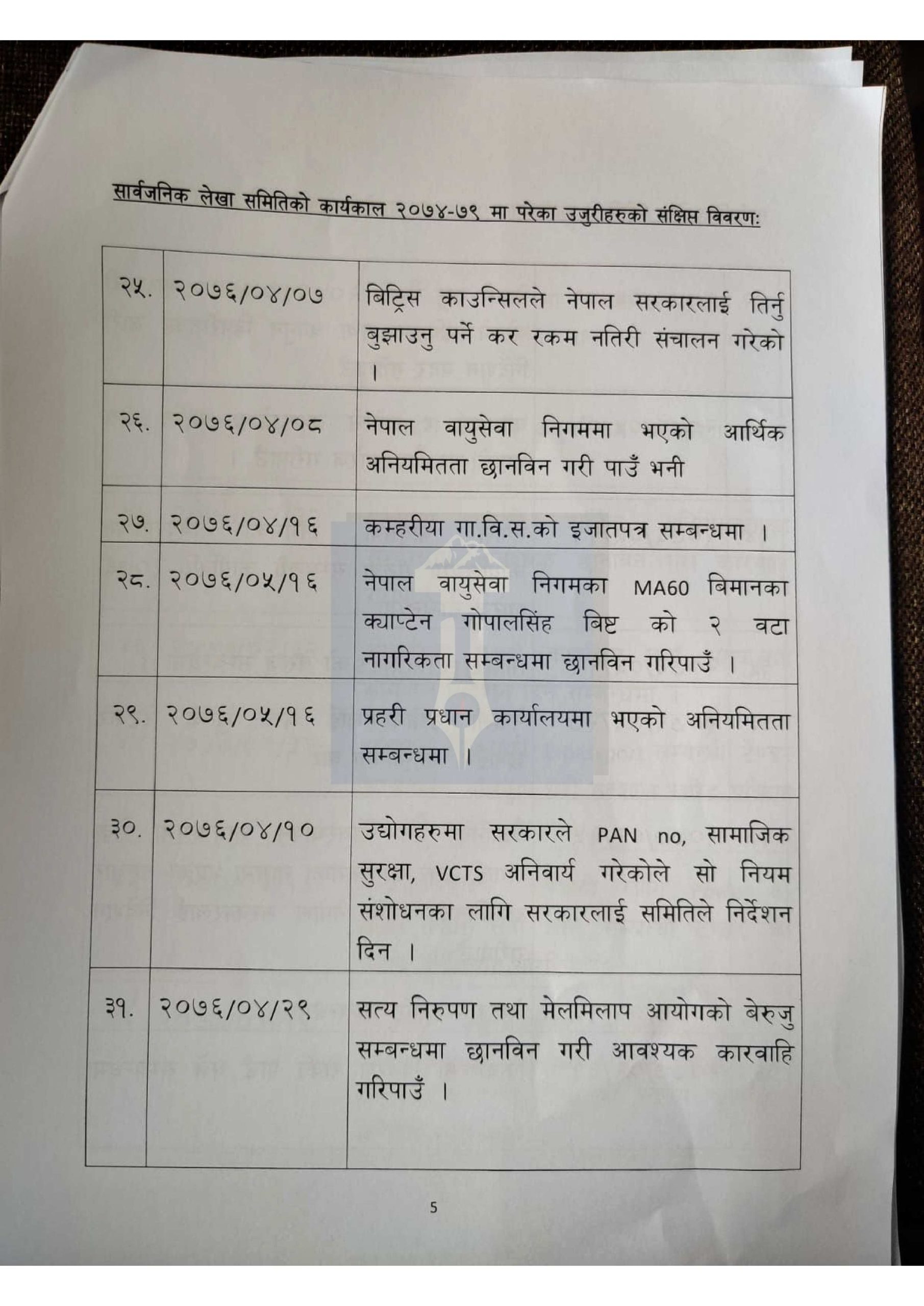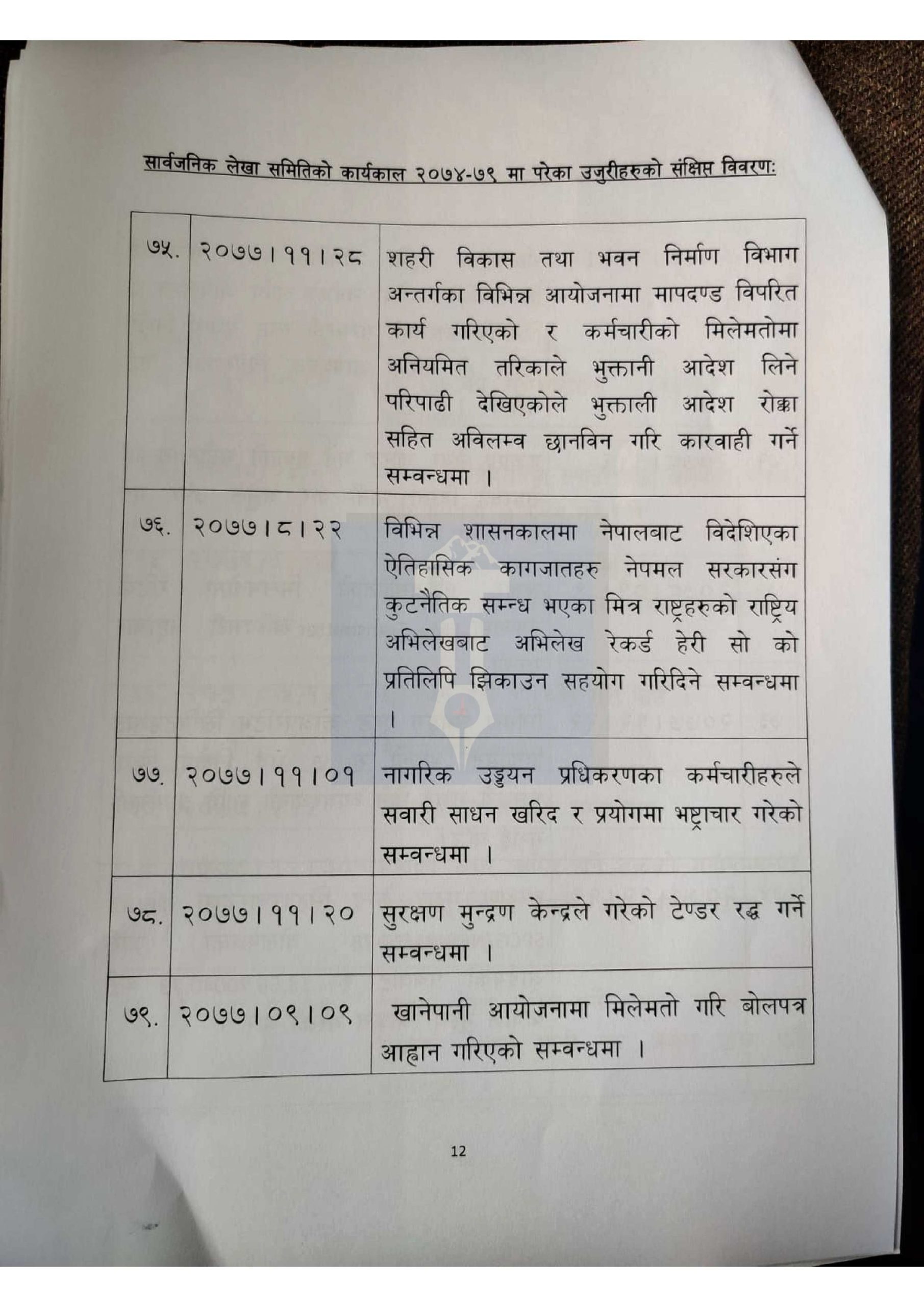 हेर्नुहोस् लेखा समितिमा परेका १ सय उजुरीको विवरण>