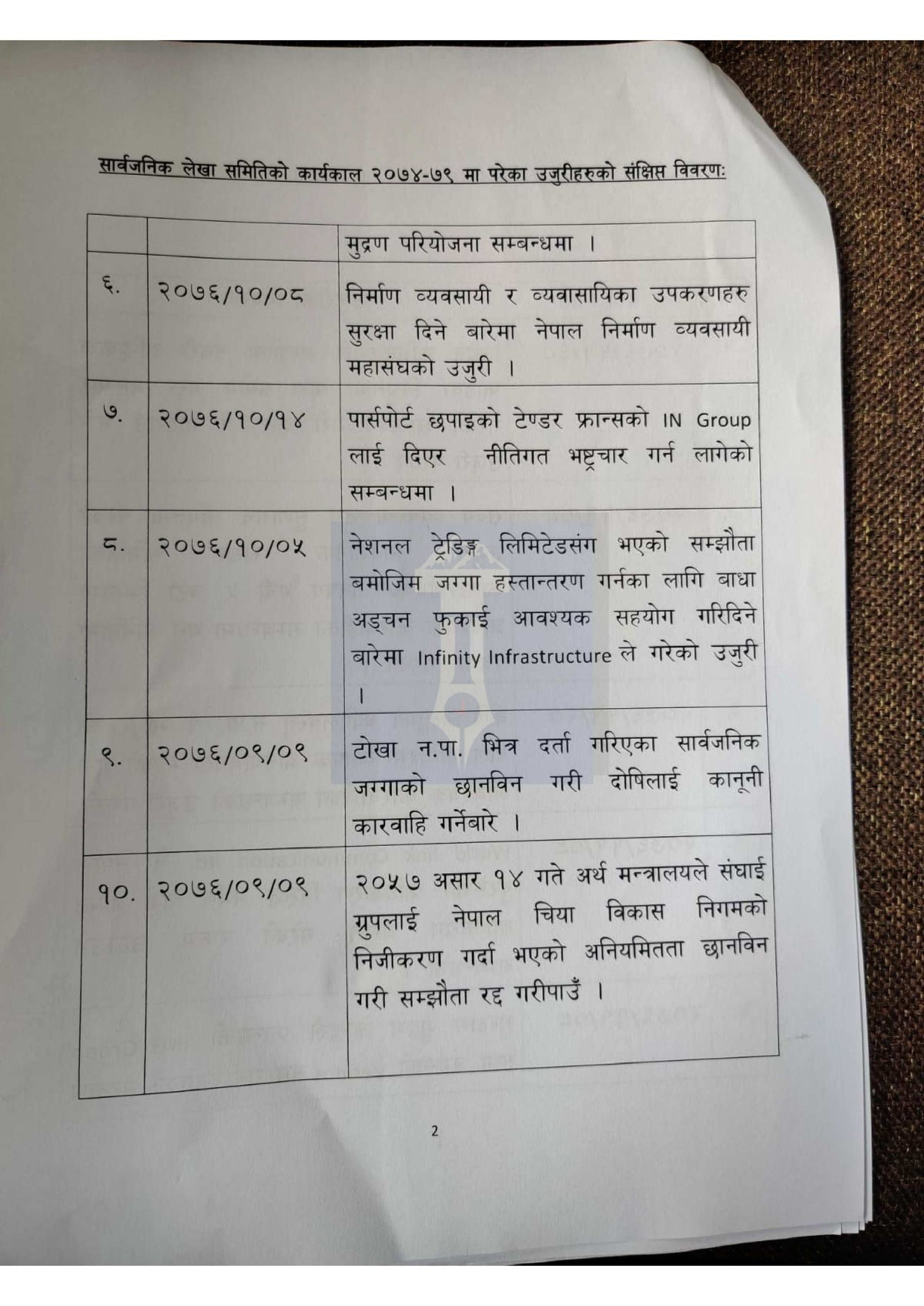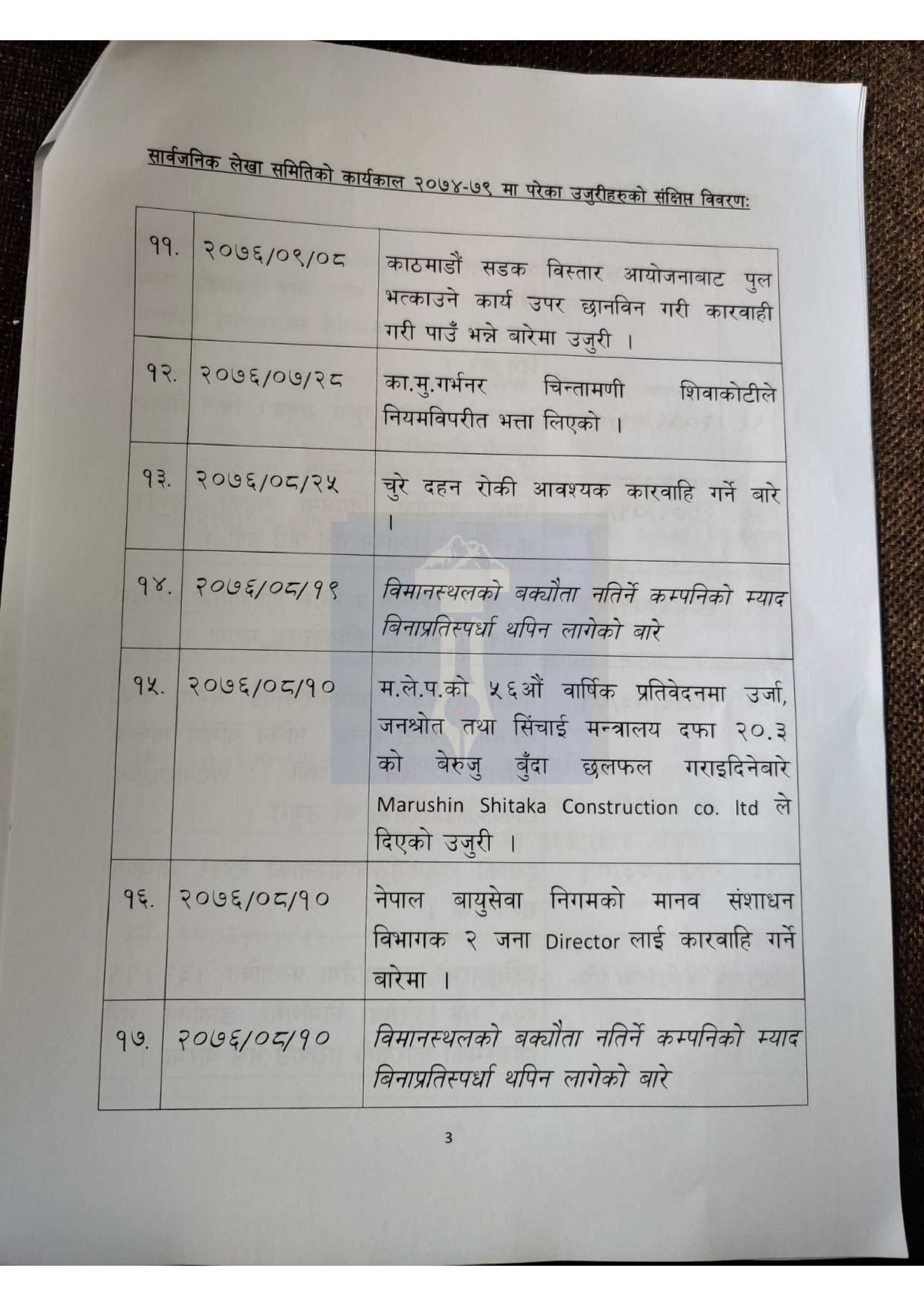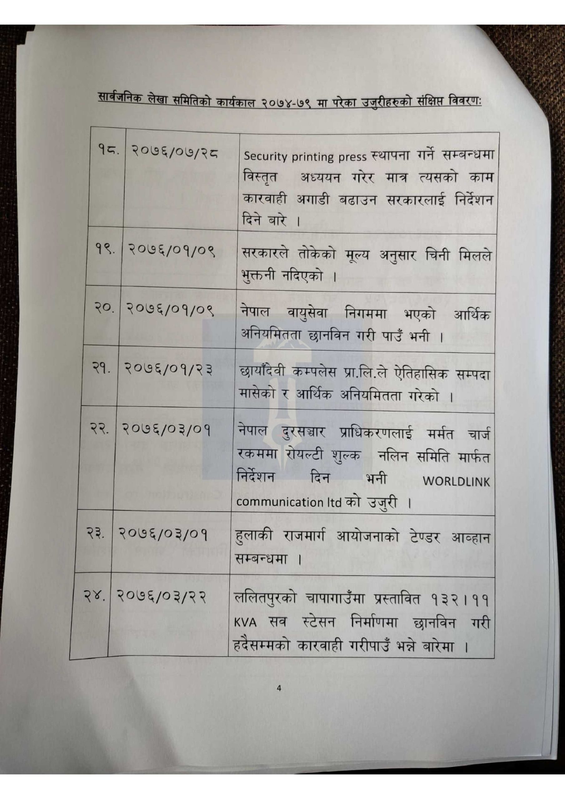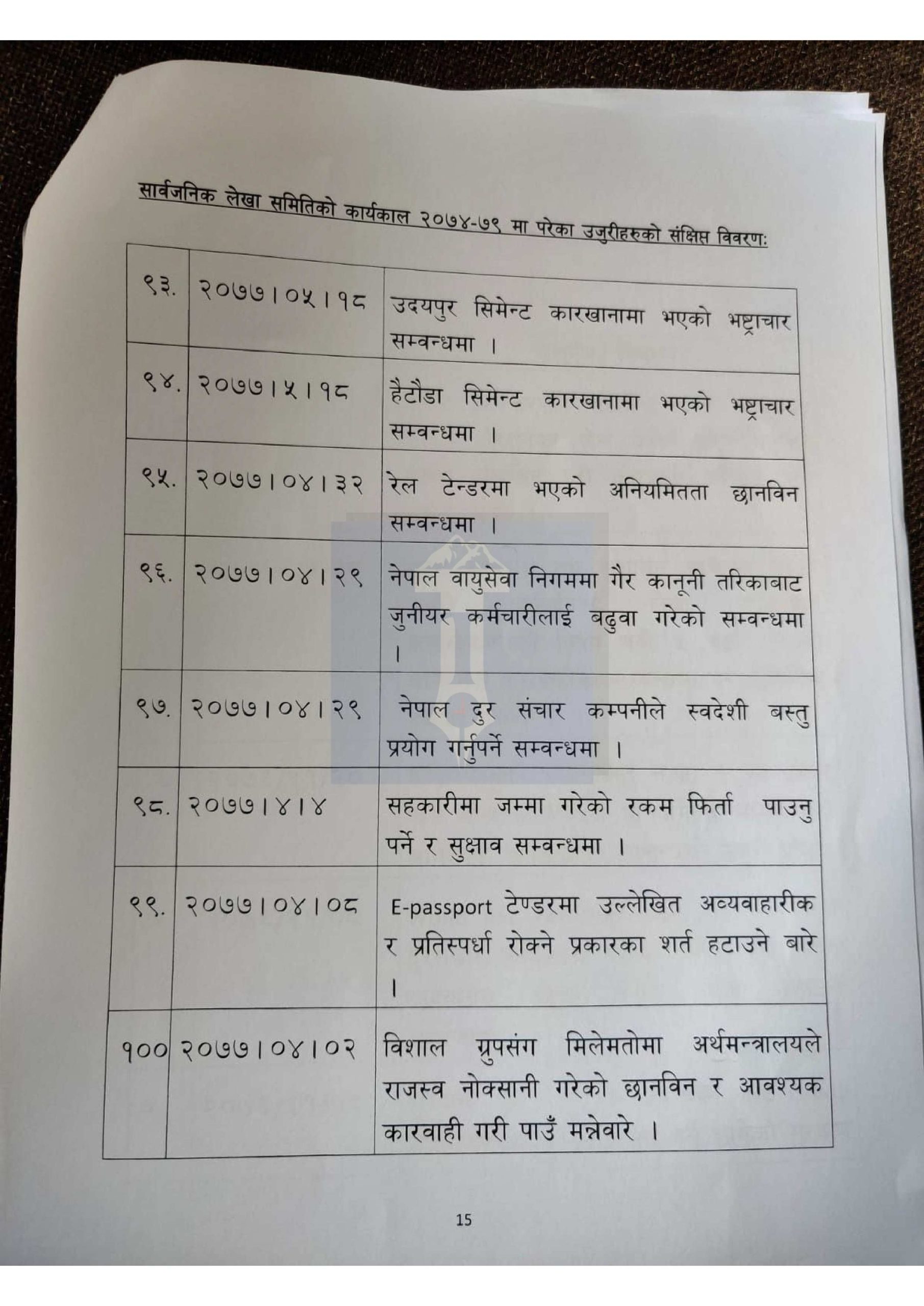 हेर्नुहोस् लेखा समितिमा परेका १ सय उजुरीको विवरण>