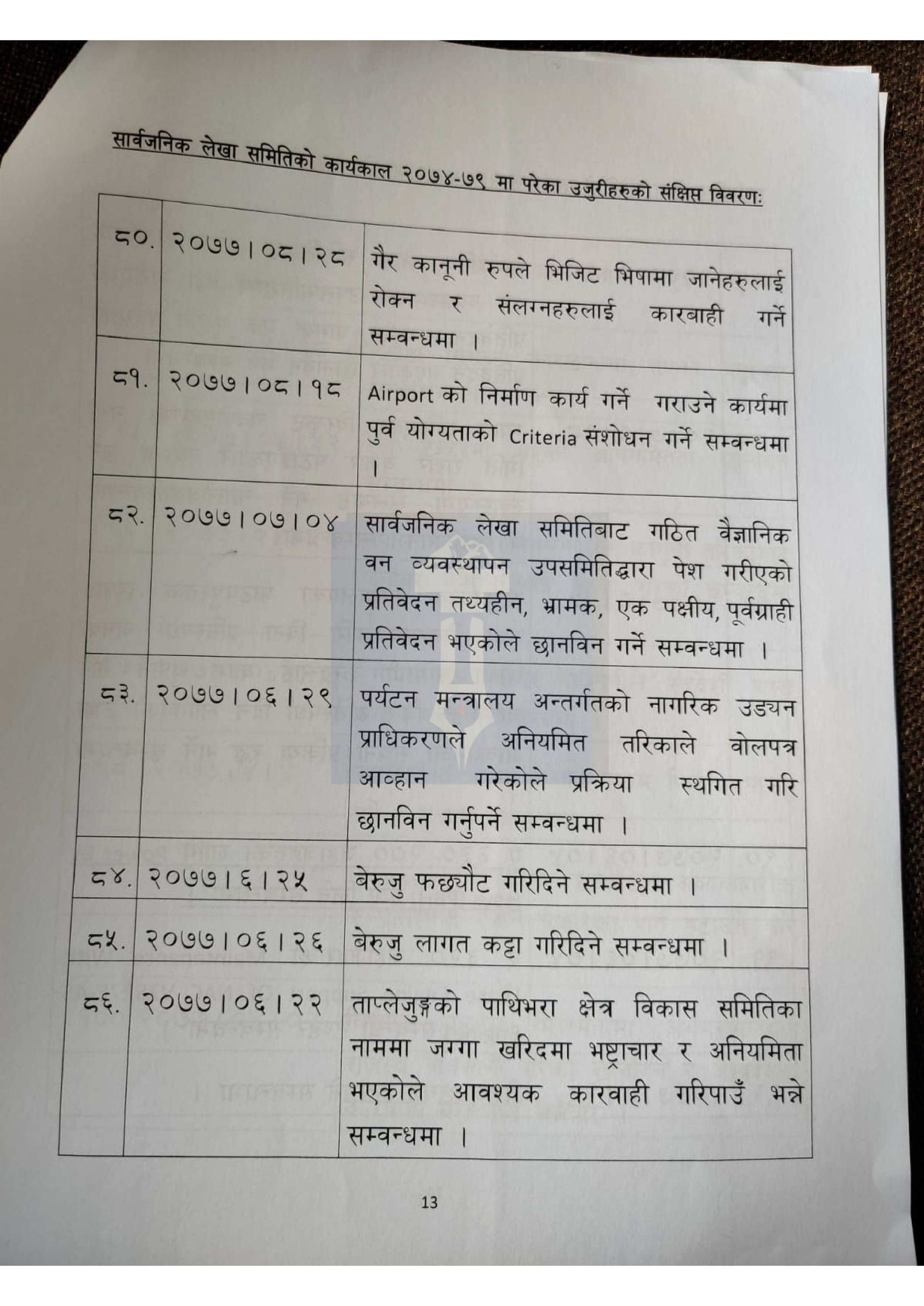 लेखा समितिमा परेका १ सय उजुरीको विवरण तयार, चन्द्रागिरि नगरका विषय पनि परे कि? सूची हेर्नुहोस्