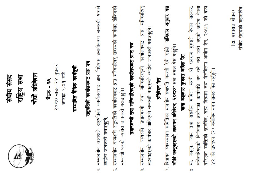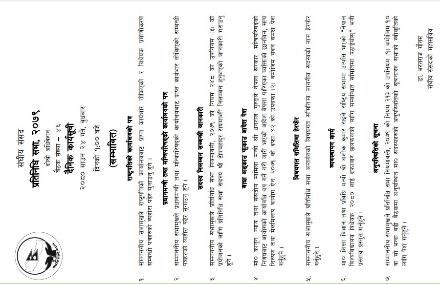यस्तो छ आजको राष्ट्रिय सभा बैठकको सम्भावित कार्यसूची :