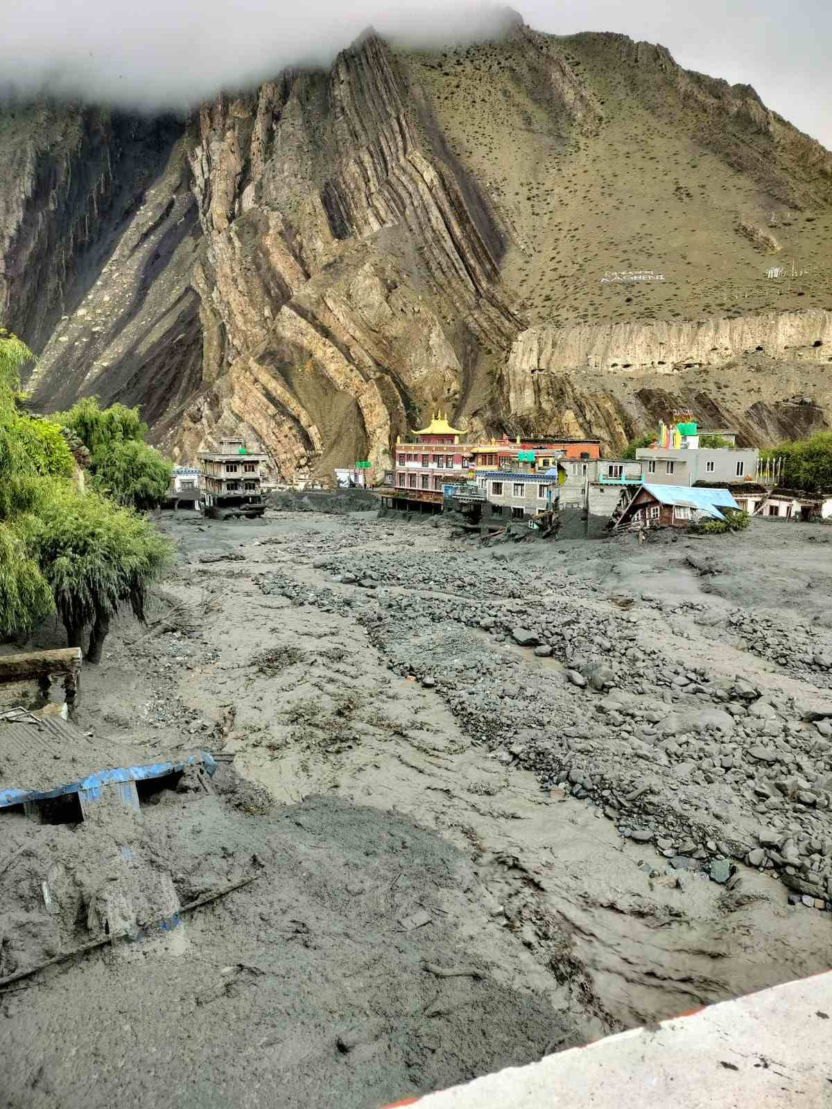 “के कति क्षति भयो भनेर त्यसको विवरण लिने प्रयास गरिरहेका छौँ । करिब १२ वटा घरमा बाढीले क्षति पुर्याएको छ,” घटनास्थलमा रहेका मुस्ताङका सहायक प्रमुख जिल्ला अधिकारी चन्द्र कान्त बस्नेतले भने, “दुई तलासम्म घर बाढी र ढुंगामुढाले पुरिएका छन् । अहिले नेपाली सेना र नेपाल प्रहरी र सशस्त्र प्रहरीले घरमा रहेका सामान निकाल्ने काम गरिरहेको छ ।”