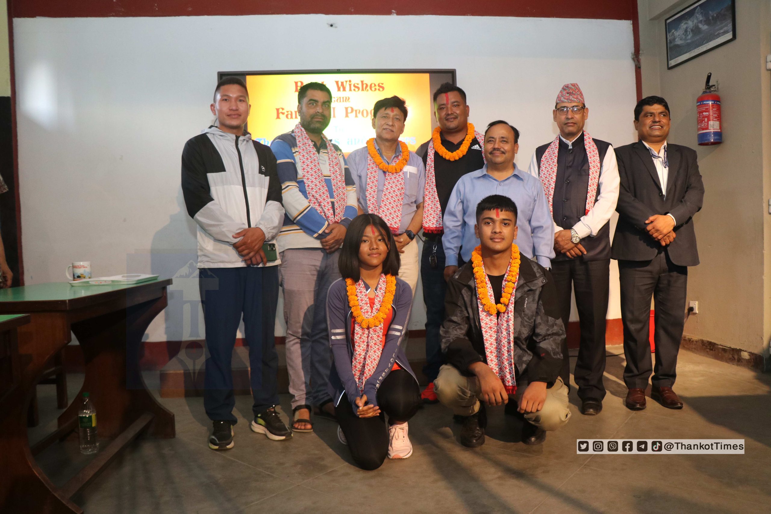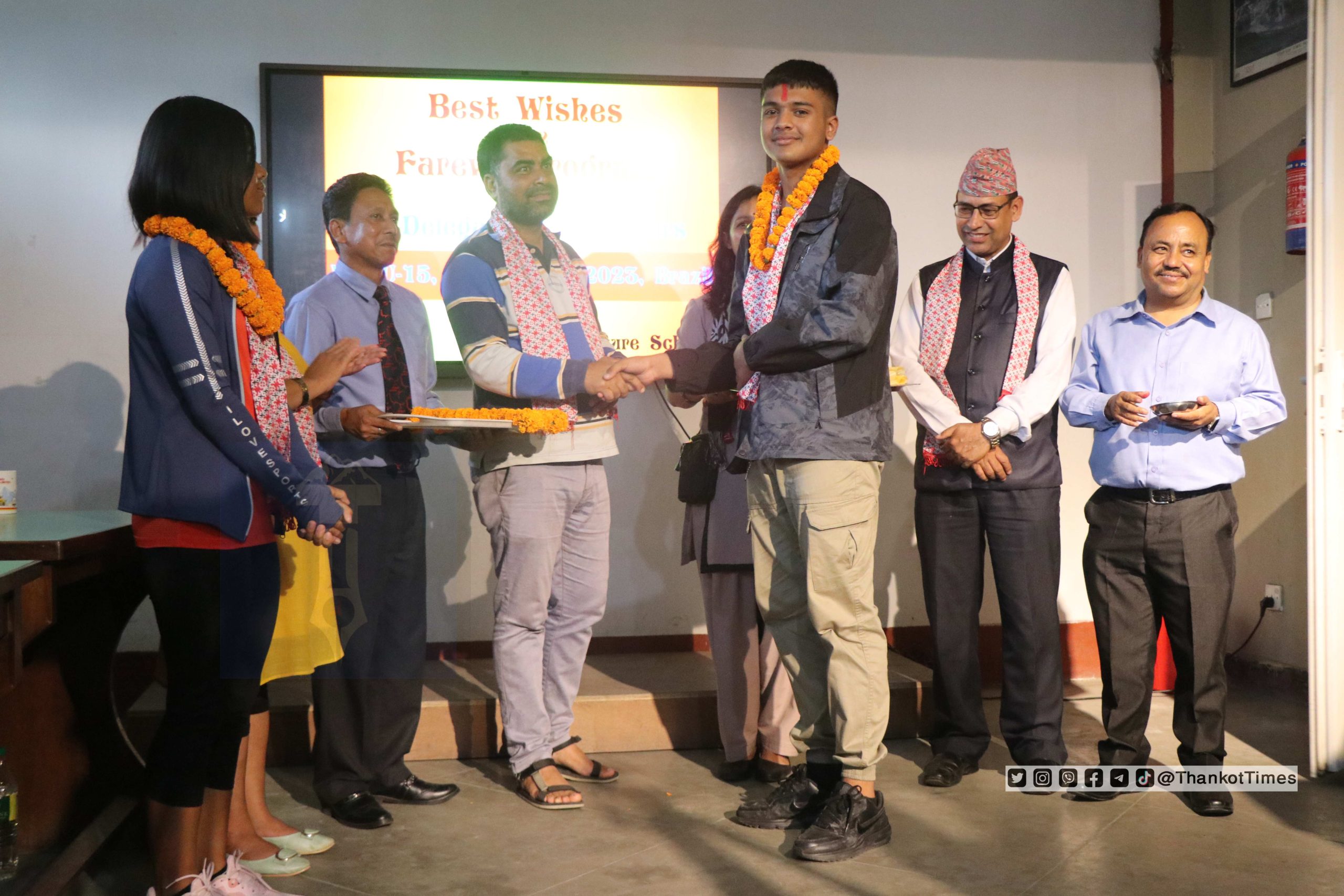 विद्यालयमा बुधबार अपरान्ह एक कार्यक्रमका बीच चन्द्रागिरि नगरपालिका वडा नं १५ का वडाध्यक्ष घनश्याम लुँइटेल लगायत अन्य जनप्रतिनिधिहरु, चन्द्रागिरि नगरपालिकाकाे युवा, खेलकुद तथा शिक्षा शाखाका अधिकारीहरु, साे विद्यालयका प्रधानाध्यापक दयाराम थापा लगायतले सो टोलीलाई शुभकामना दिँदै बिदाई गर्नुभएको हो ।