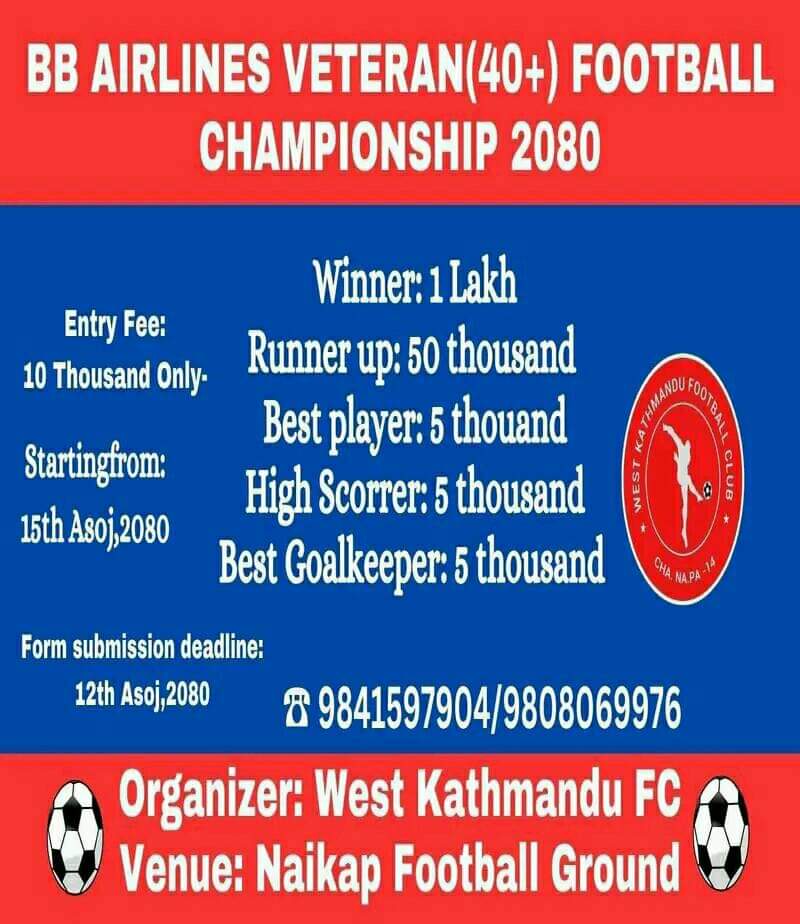 बीबी एअवेजको मूल प्रायोजनमा ४० वर्ष उमेर माथिको फुटबल प्रतियोगिता हुने भएको छ ।