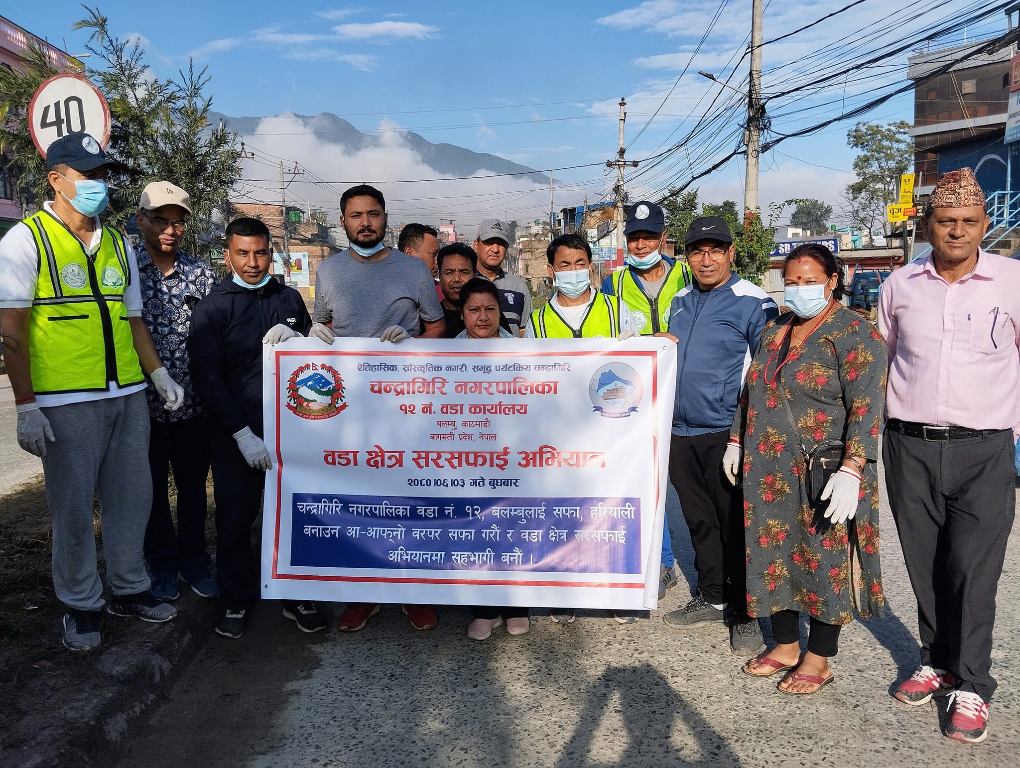 संविधान दिवसकै अवसरमा चन्द्रागिरि नगरपालिका वडा नं. १२ बलम्बुको आयोजनामा बुधबार बिहान गुर्जुधारा चोक लगायतको क्षेत्रमा सरसफाई गरिएको छ ।