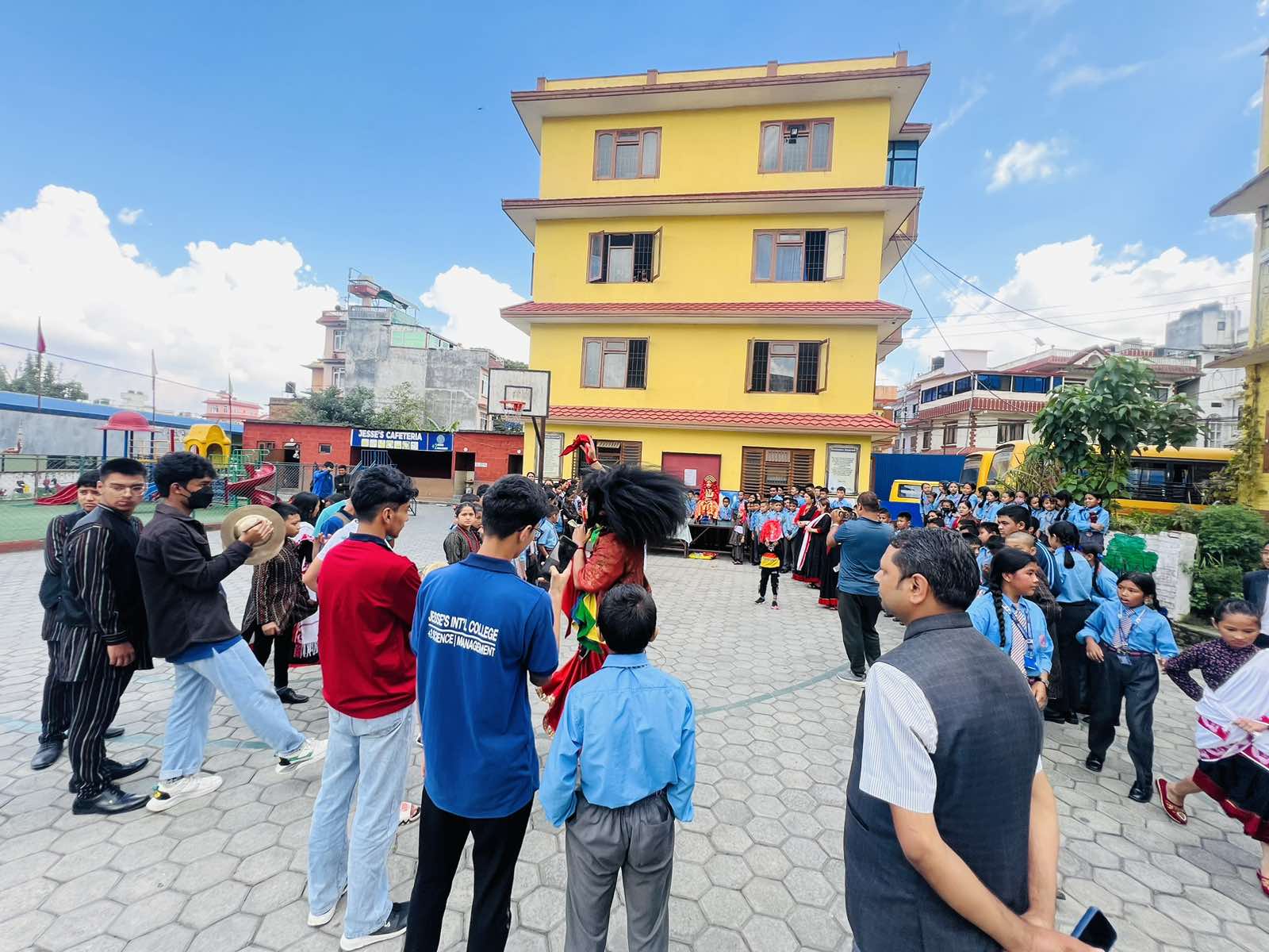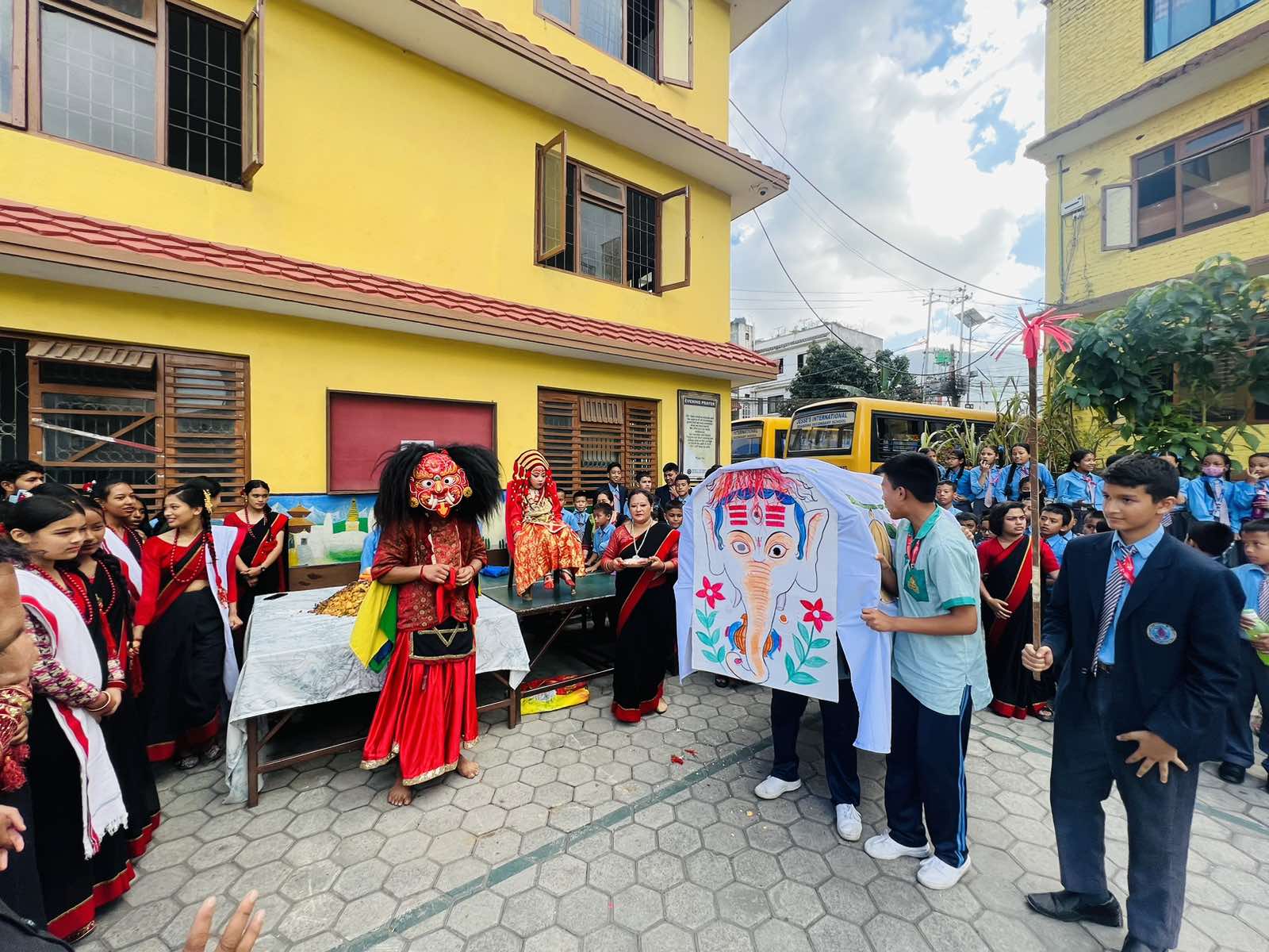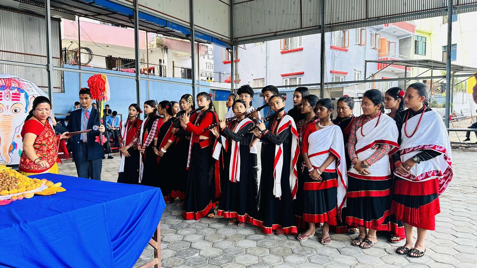 कार्यक्रममा प्राथमिक तथा माध्यमिक दुवै तहका विद्यार्थीले बजाएकाे बाँसुरी तथा धाँ बाजाकाे तालमा लाखे (कक्षा १० का छात्र अभि महर्जन ) नाच देखाएका थिए ।
