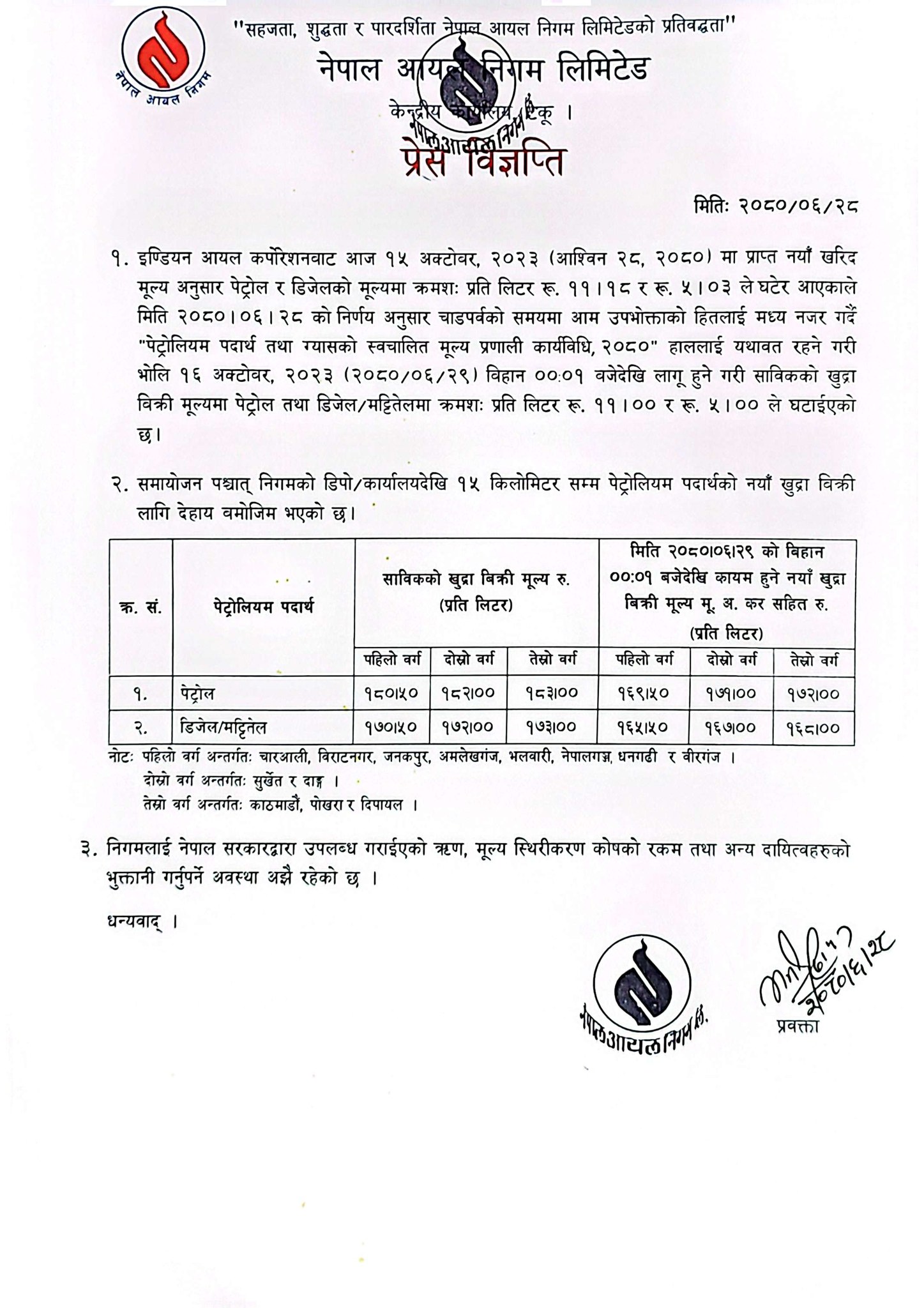 आज राति १२ बजेपछि लागू हुनेगरी निगमले मूल्य घटाएको हो ।