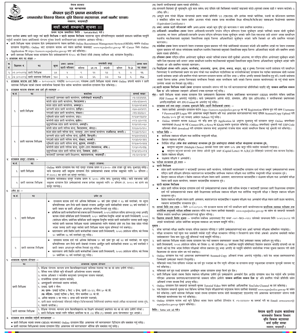 प्रहरी निरीक्षक (इन्सपेक्टर) र प्रहरी सहायक निरीक्षक (असई) पदमा गरी ३५६ जनाका लागि भर्ना खुलेको हो ।