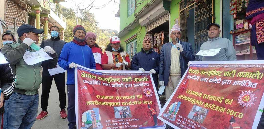 नेकपा एमाले चन्द्रागिरि नगर कमिटिले गर्यो नागढुंगादेखी चेकपोष्टसम्म राजमार्गमा सरसफाई