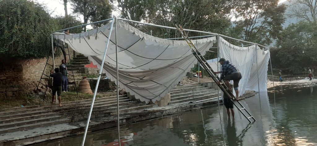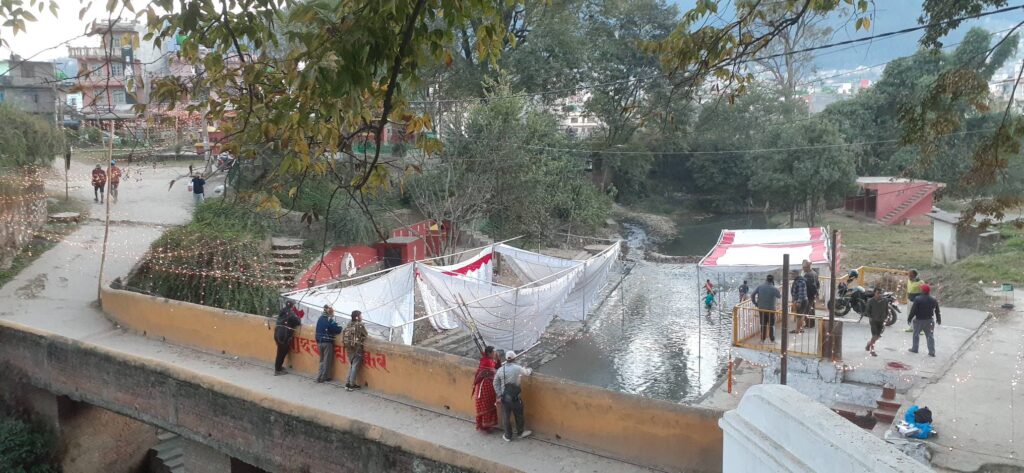 चन्द्रागिरि नगरपालिका १५ तीनथानास्थित विष्णुदेवी क्षेत्रको नदी किनारमा छठका लागि घाट तयारी तिव्र बनाइएको छ ।