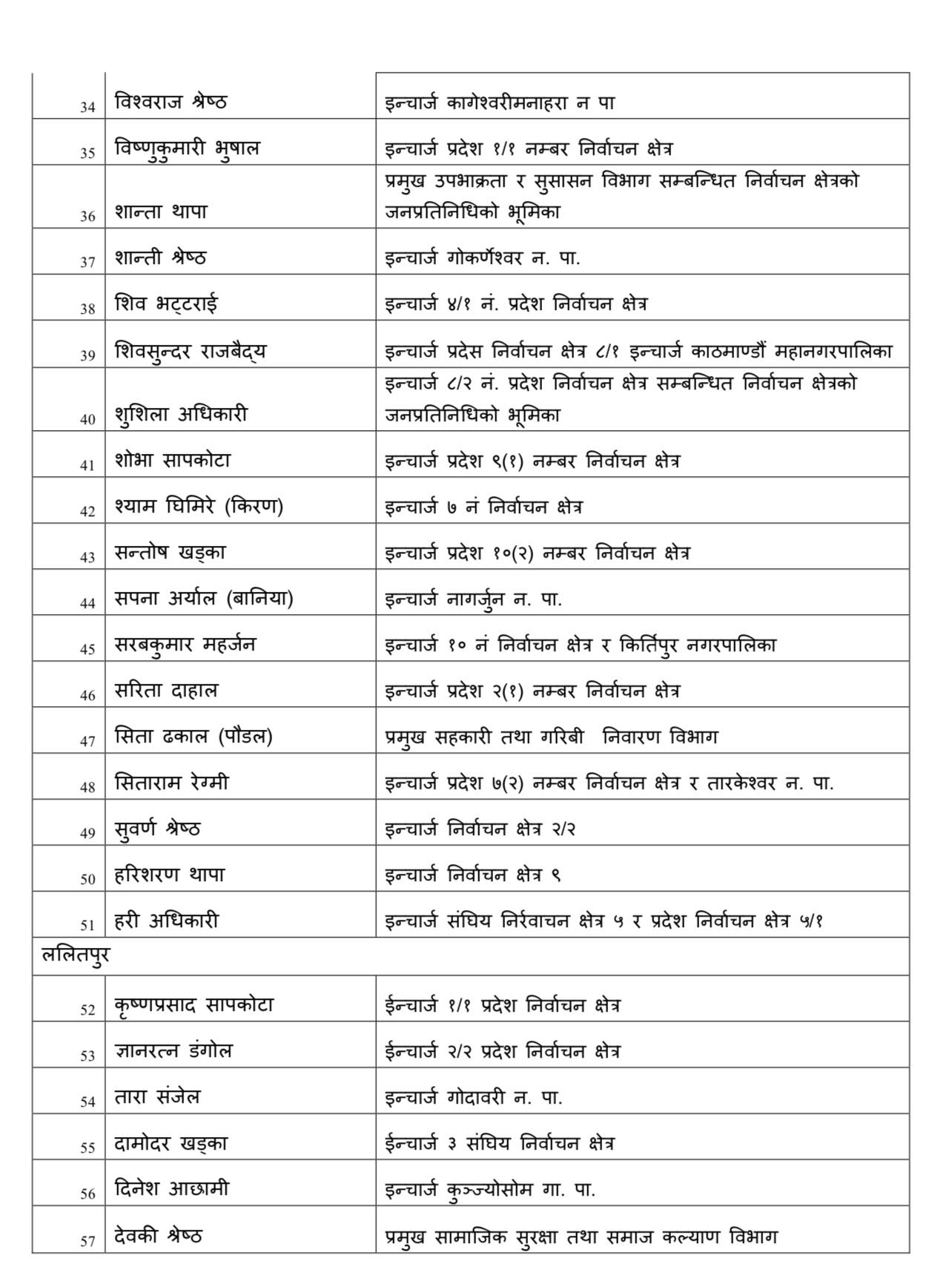 एमाले काठमाडाैं क्षेत्र नं. ९ को इन्चार्जमा हरिशरण थापा, १० ख को इन्चार्जमा सन्तोष खड्का
