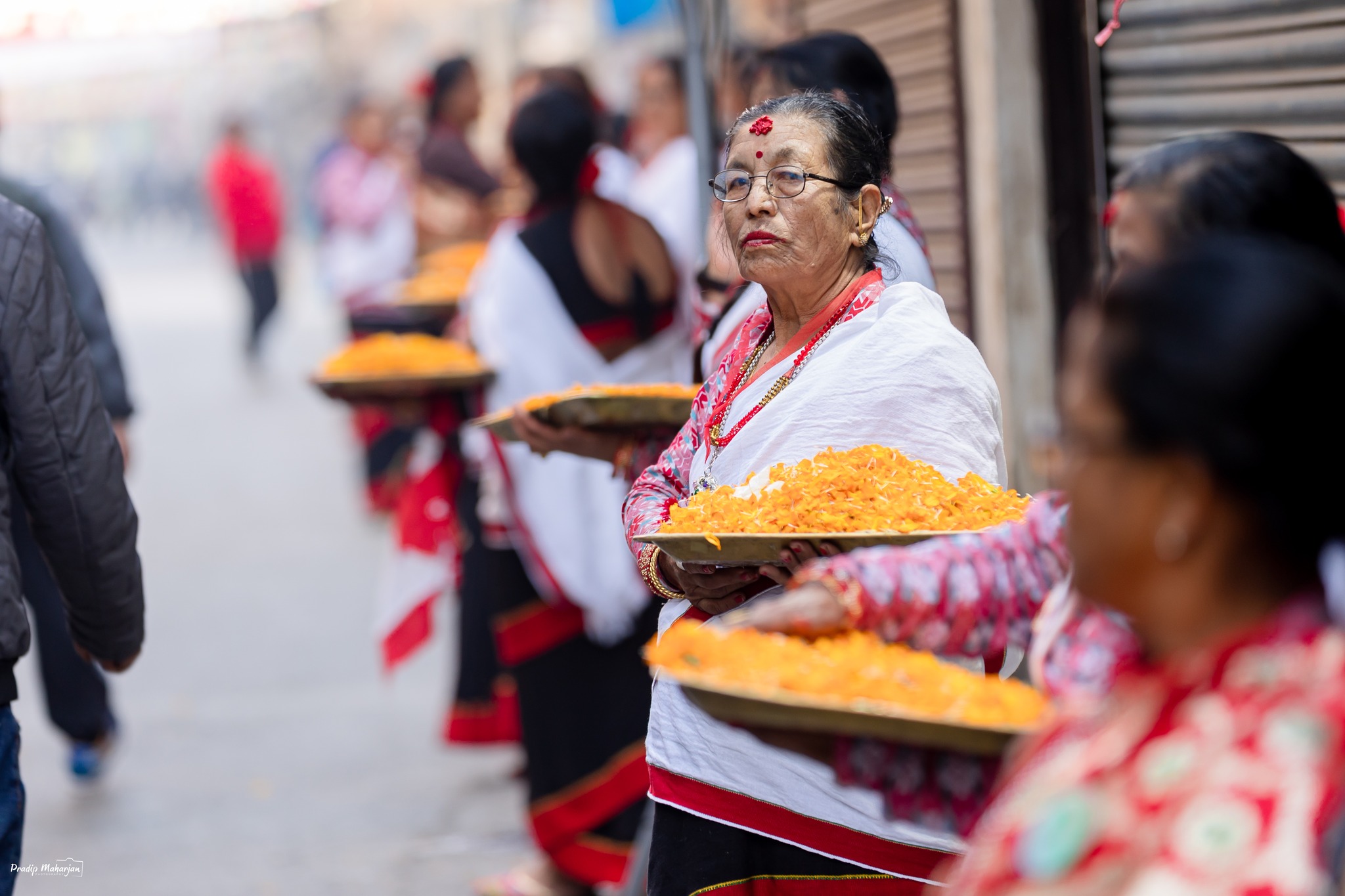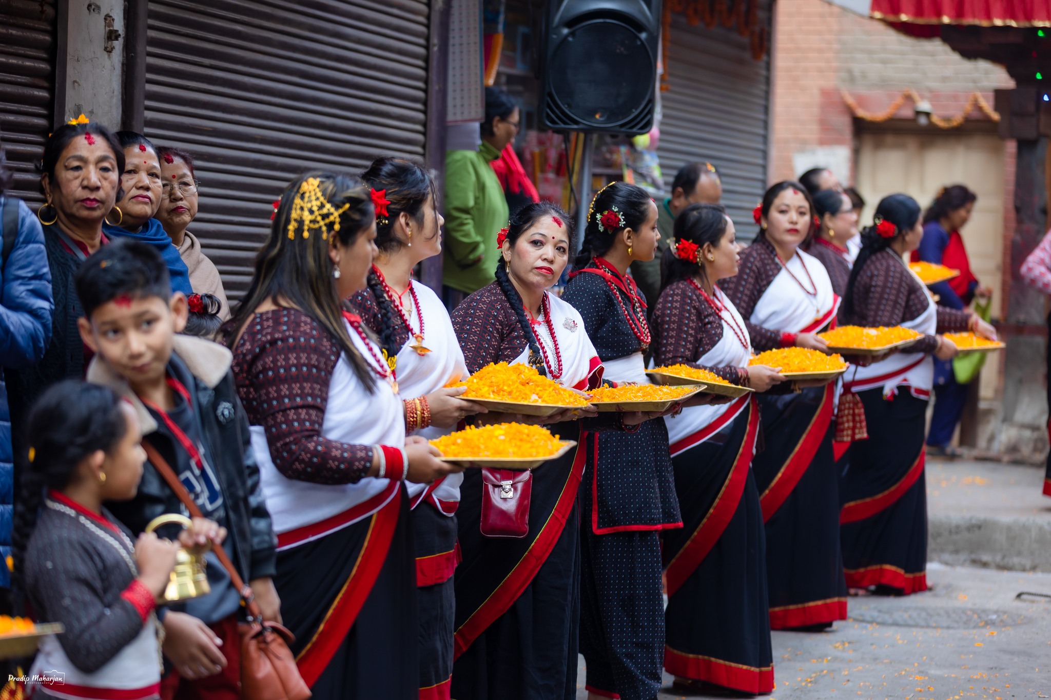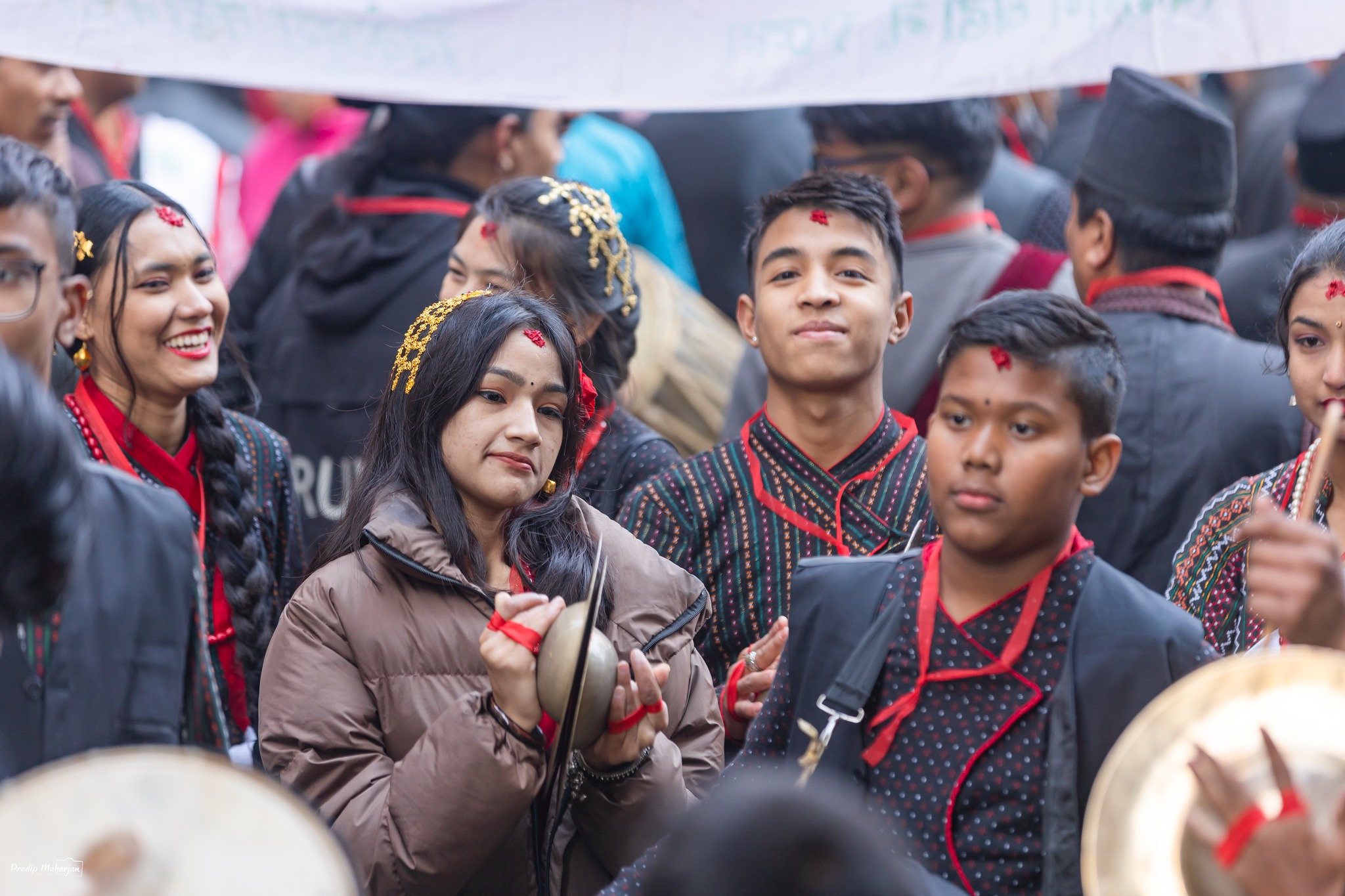 काठमाडौंमा नेवारी पहिरनमा सजिएर बाजागाजासहित दिवस मनाइएको हो ।