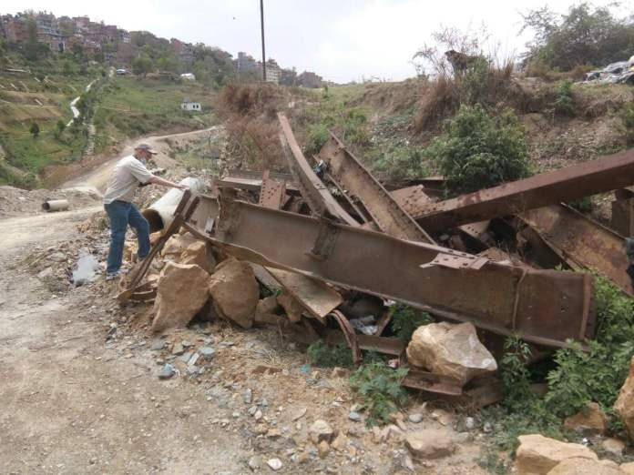 चन्द्रागिरि वडा नंं १५ तीनथानास्थित वडा कार्यालयमा सुरक्षित राखिएको रेल गुड्ने पुलमा राखिएको जानकारी ।