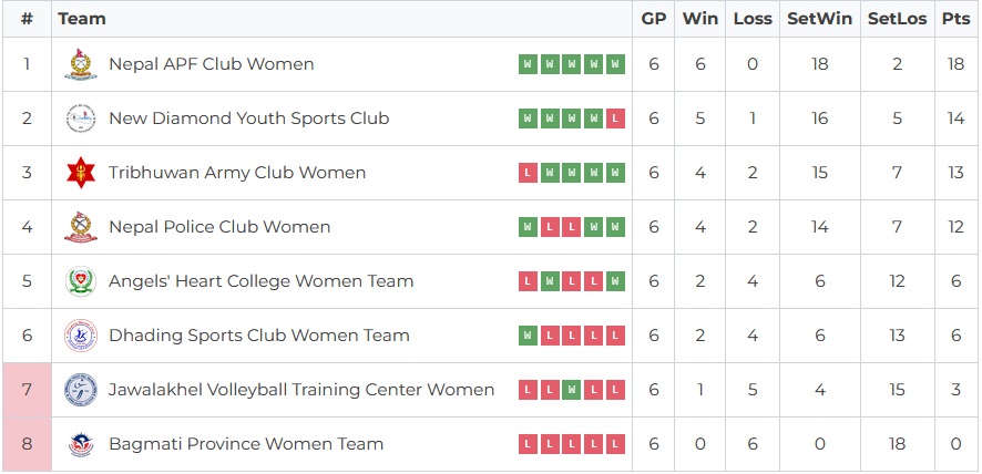 चन्द्रागिरि नगरपालिका न्यु डायमण्ड महिला भलिबल टिमले होङवाङ्जी ढोरपाटन महिला भलिबल डबल लिग च्याम्पियनसिपमा पहिलो हार ब्यहोरेको छ ।