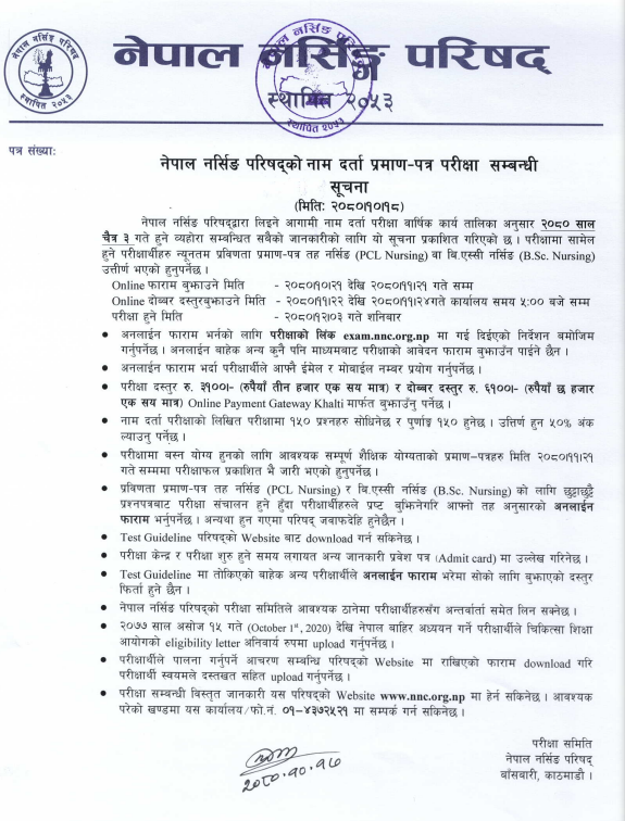 पीसीएल  र बीएस्सी नर्सहरूलाई छुट्टाछुट्टै फर्म भर्न काउन्सिलले आग्रह गरेको छ ।