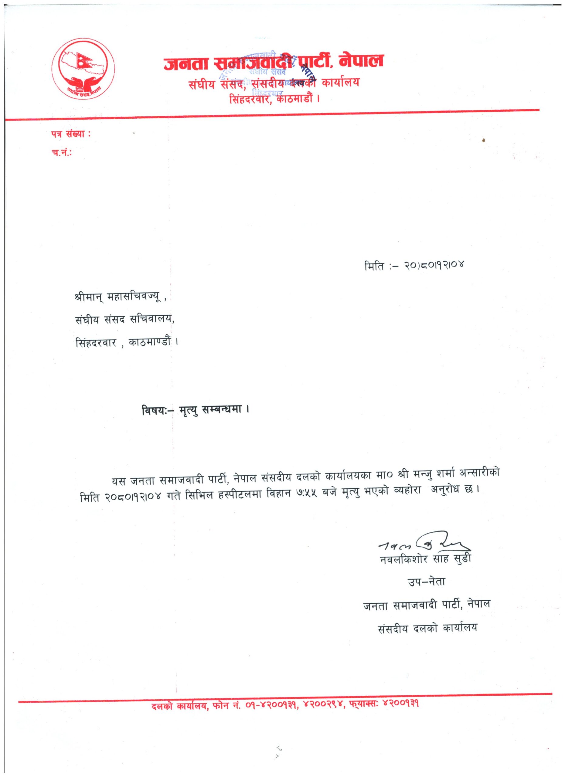प्रतिनिधि सभा सदस्य मञ्जु शर्मा अन्सारीको निधन