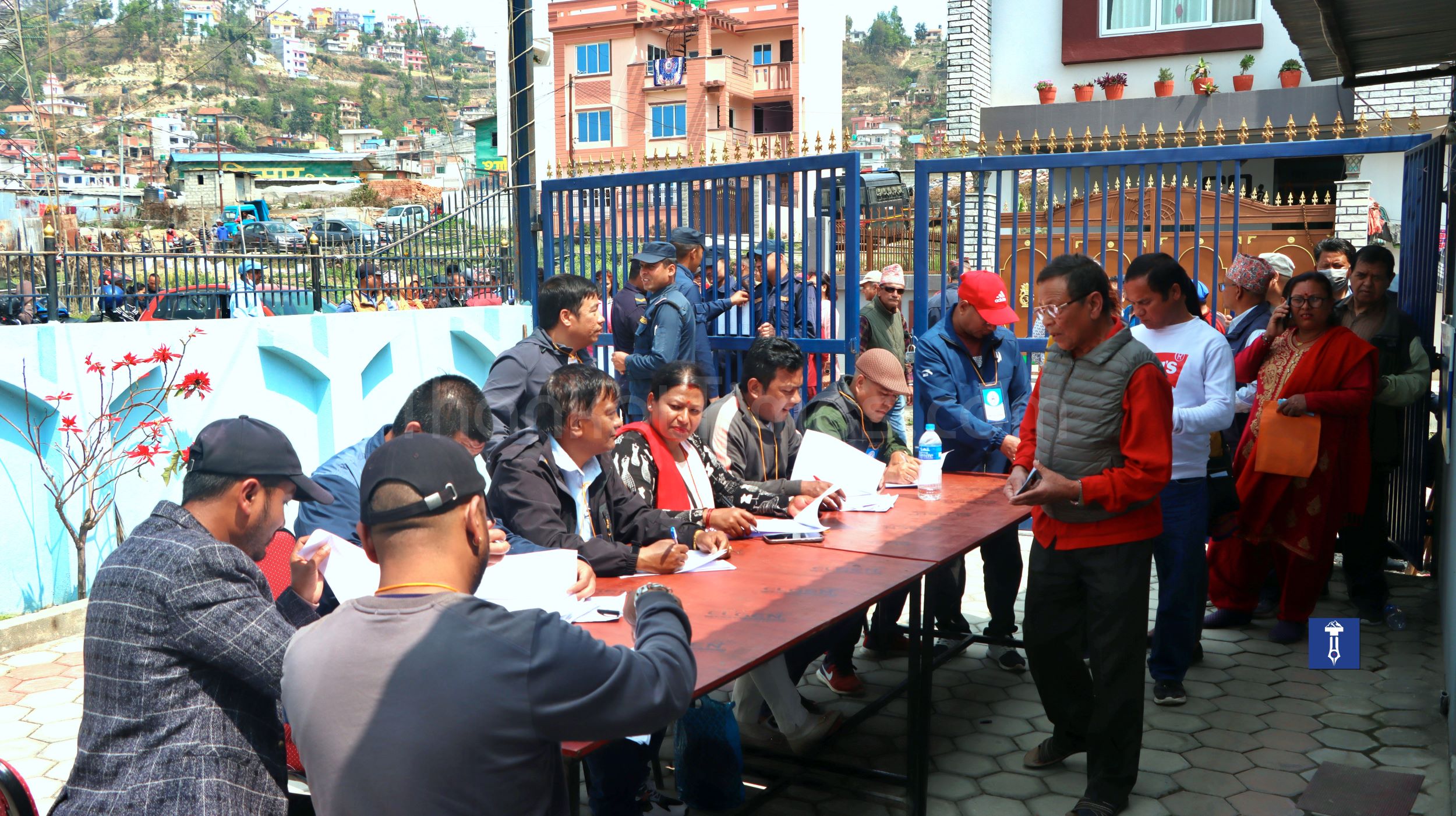 नैकापस्थित गाेल्डस्टार पार्टी प्यालेसमा बिहान ९ बजेबाट सुरु भएको मतदान अपरान्ह ४ बजेसम्मका लागि निर्धारण गरिएकोमा मतदान गर्ने मतदाताको अझै बाँकी रहेकाले सो कार्य निरन्तर अघि बढ्ने निर्वाचन अधिकृत ईश्वरप्रसाद सुवेदीले जानकारी दिनुभयाे ।