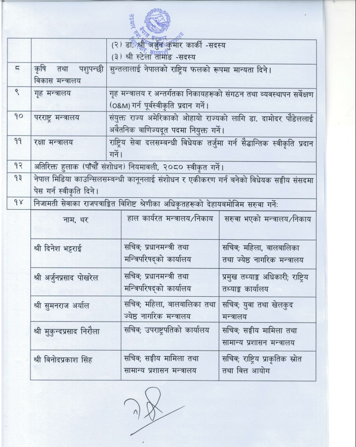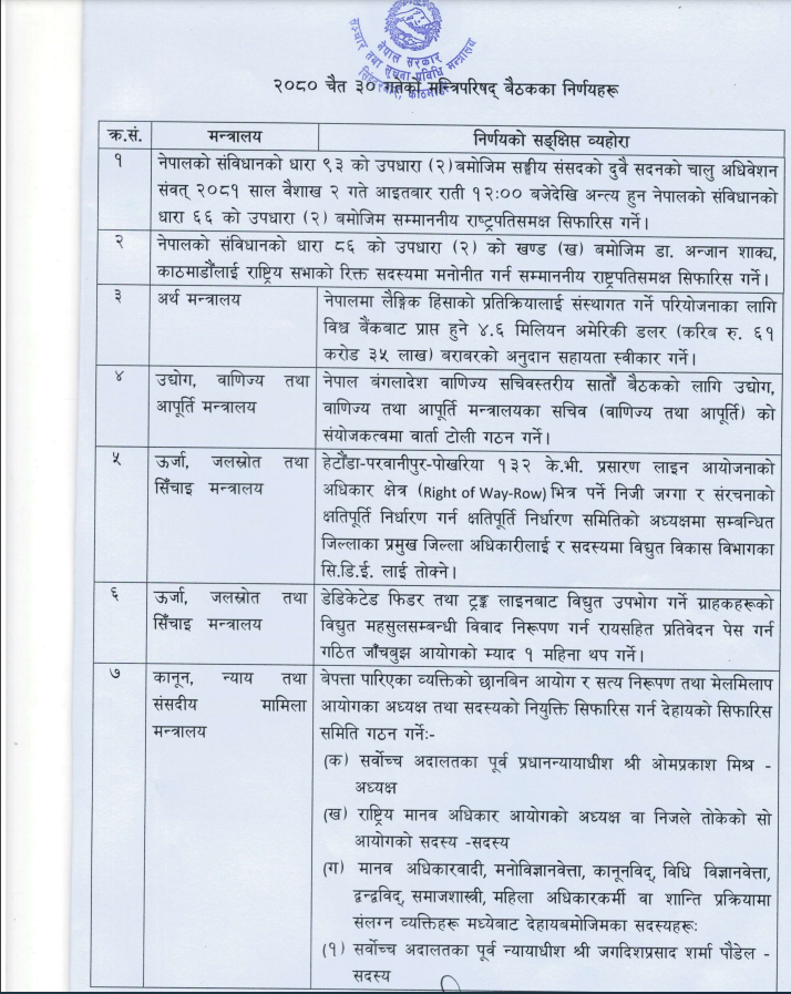 यस्ता छन मन्त्रिपरिषद् बैठकका १४ वटा निर्णयहरूः