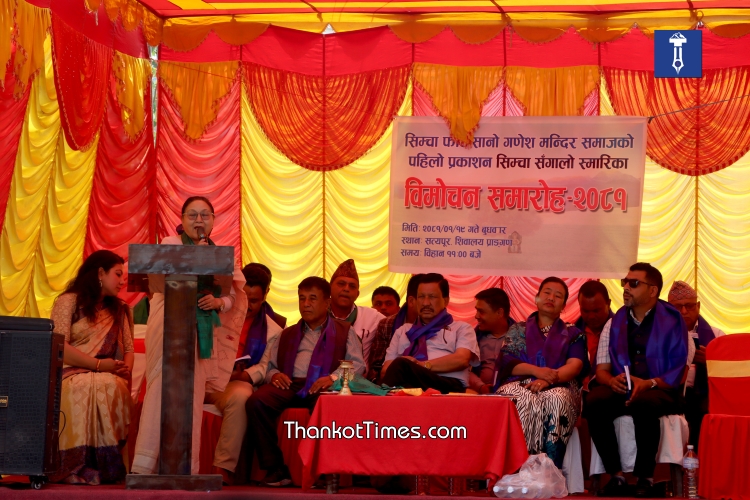 चन्द्रागिरि नगरपालिका-१० सतुगंलस्थित सिम्चा फाँट सानो गणेश मन्दिर समाजले प्रकाशन गरेको कृति सिम्चा संगालो स्मारिका-२०८१ बुधबार एक कार्यक्रमका बीच विमोचन गरिएको छ ।