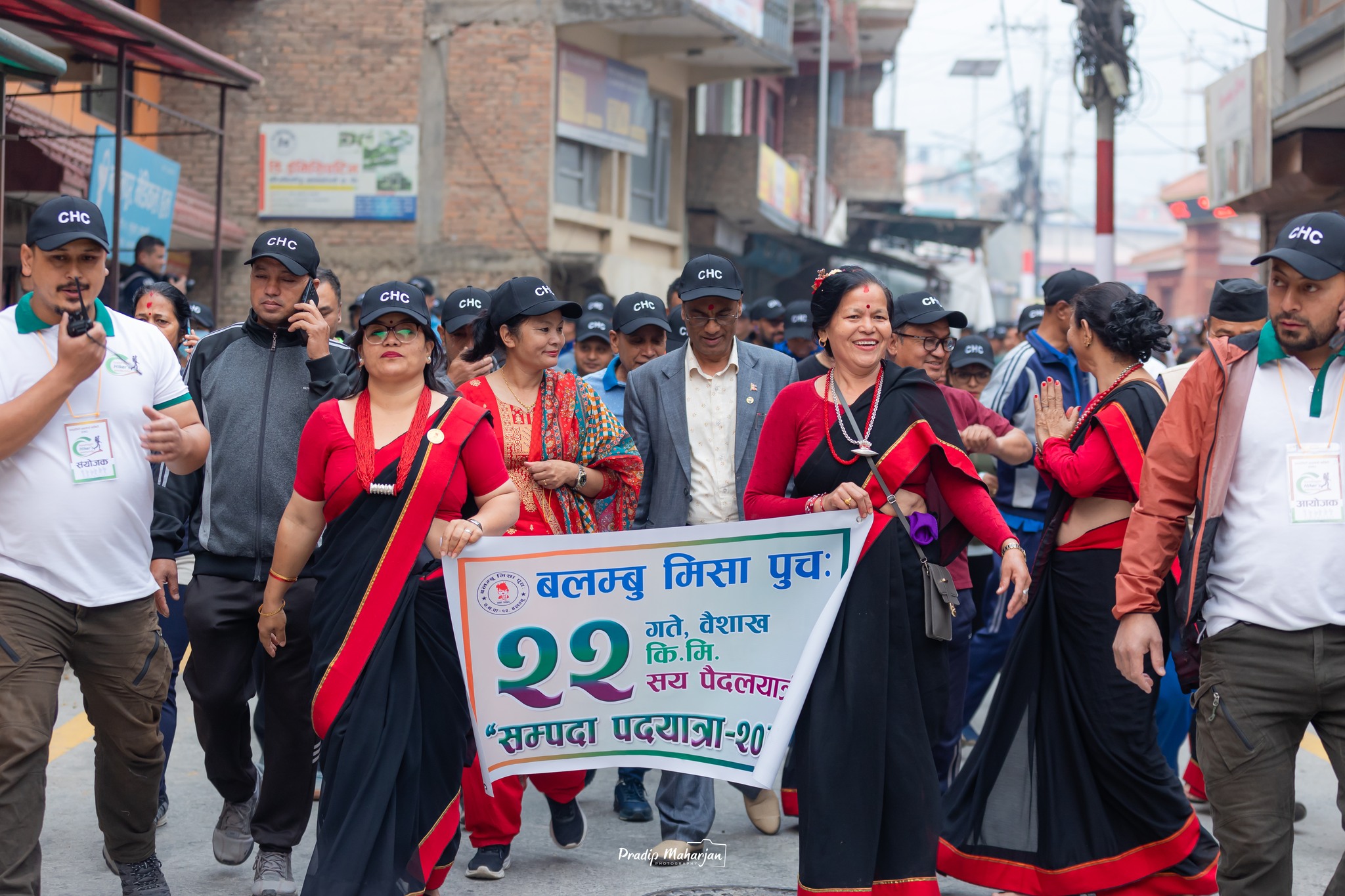 चन्द्रागिरि नगरपालिका कार्यालय बलम्बुबाट सुरु भएको पैदलयात्रा दहचोक हुँदै सुरुङमार्ग, घट्टेडाँडा पार्क, बाडभन्ज्याङ चण्डिकादेवी हाइट, लगलगे पाखा बुद्धपार्क, चुनदेवी मन्दिर, थानकोट कोतघर हुँदै चन्दन भराटे महादेवस्थान, मातातीर्थ, बालागाउँ, किसिपिँढी हुँदै सतुंगल, बोसिगाउँ, मत्स्यनारायण मन्दिर हुँदै विष्णुदेवी मन्दिरबाट नैकाप फुटबल मैदानमा पुगेर सम्पन्न भएको थियो ।
