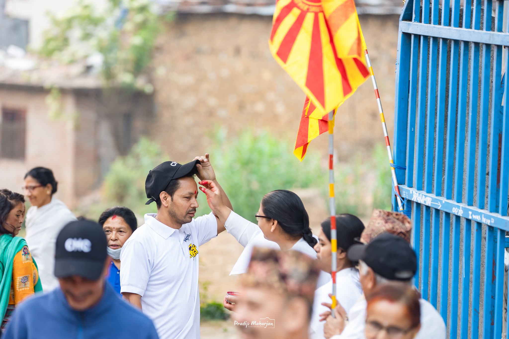 पदयात्रीका लागि नगरका विभिन्न क्षेत्रमा स्थानीयले स्वागत गर्दै खाजा, पानी, सगुन खुवाएका थिए ।