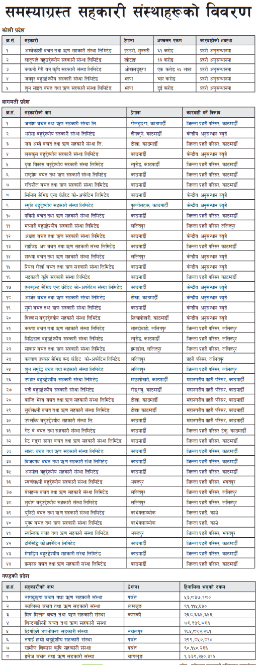 बागमतीका यी सहकारी जसले आर्थिक अपलचन गरे, चन्द्रागिरि नगरका सहकारी पनि सूचीमा