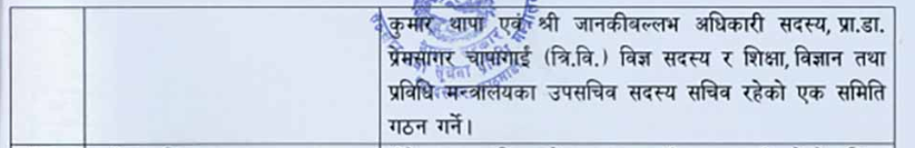 समितिले लगत संकलन, संरक्षण, उपभोग, व्यवस्थापन र आवश्यक अन्य कार्यका लागि अध्ययन गरी ठोस प्रतिवेदन पेस गर्ने सञ्चार तथा सूचना प्रविधिमन्त्री रेखा शर्माले जानकारी दिइन् । समिति सदस्यहरूमा पूर्वसहसचिवद्वय महेन्द्रकुमार थापा र जानकीवल्लभ अधिकारी रहेका छन् । त्यस्तै प्रा.डा. प्रेमसागर थापा त्रिवि विज्ञ सदस्य र शिक्षा, विज्ञान तथा प्रविधि मन्त्रालयका उपसचिव सदस्य सचिव रहने पनि उनले जानकारी दिइन् ।