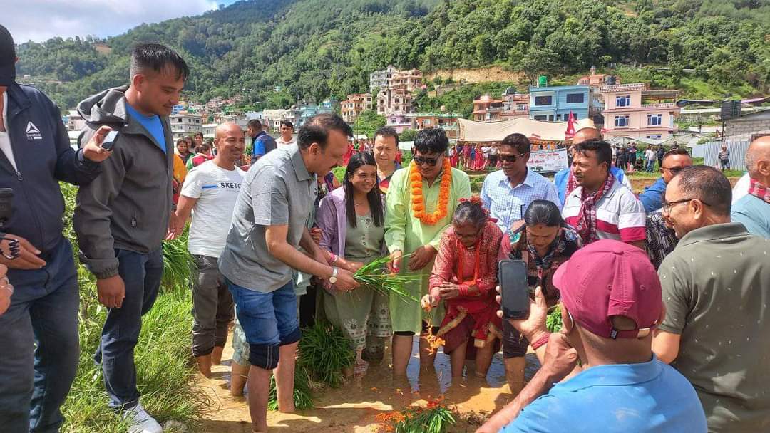 नेपाली काँग्रेस केन्द्रीय प्रवक्ता एवं सांसद प्रकाशशरण महतकाे उपस्थितिमा बलम्बु र दहचाेक क्षेत्रमा धान राेप्दै शनिबार धान दिवस मनाइएको संघका जिल्ला अध्यक्ष अमृतमान महर्जनले जानकारी दिनुभयो ।