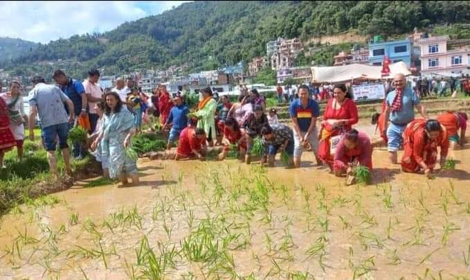 नेपाली काँग्रेस केन्द्रीय प्रवक्ता एवं सांसद प्रकाशशरण महतकाे उपस्थितिमा बलम्बु र दहचाेक क्षेत्रमा धान राेप्दै शनिबार धान दिवस मनाइएको संघका जिल्ला अध्यक्ष अमृतमान महर्जनले जानकारी दिनुभयो ।