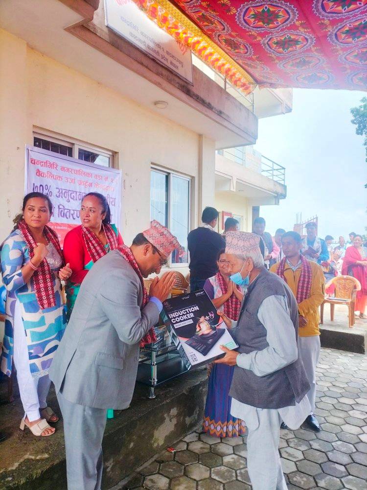 चन्द्रागिरिमा उर्जा मन्त्री बस्नेतले बाँढे १ हजार ८ सय ७० वटा विद्युतीय चुल्हो