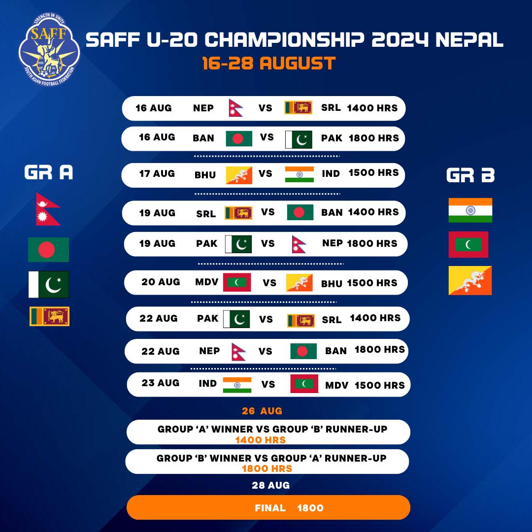 यू-२० साफ च्याम्पियनशिप- २०२४ को खेल तालिका फेरियो