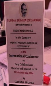 श्रीलंकामा आयोजित ‘इन्टरनेसनल कन्फरेन्स अन अर्ली चाइल्डहुड केयर एजुकेसन एन्ड रिसर्च २.०’ कार्यक्रममा नेपालबाट ब्राइट किन्डरवर्ल्ड सम्मानित भएको हो ।