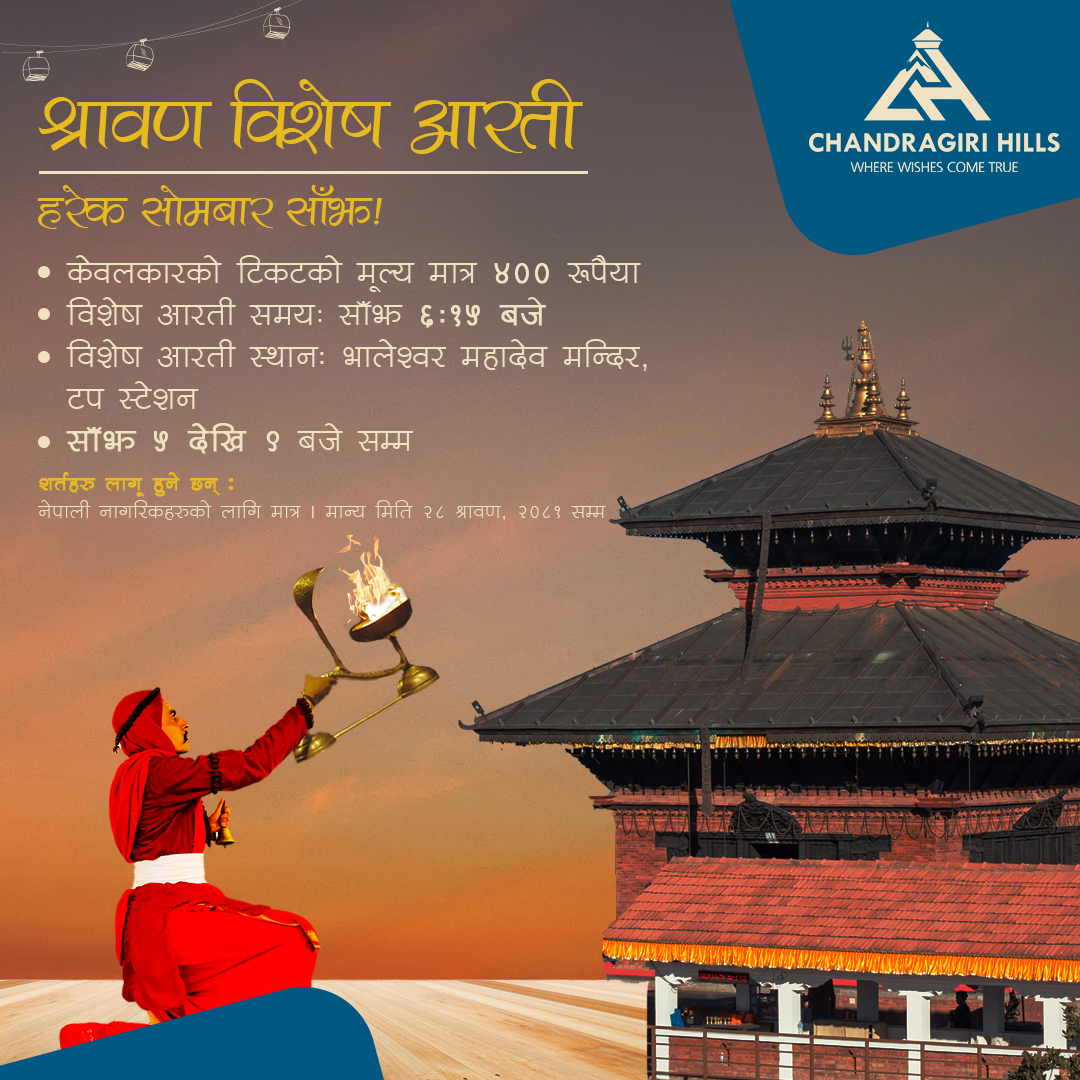चन्द्रागिरि डाँडास्थित भालेश्वर मन्दिरमा गतवर्षबाट साउन महिनाको सोमबार विशेष आरती हुँदै आएको छ ।
