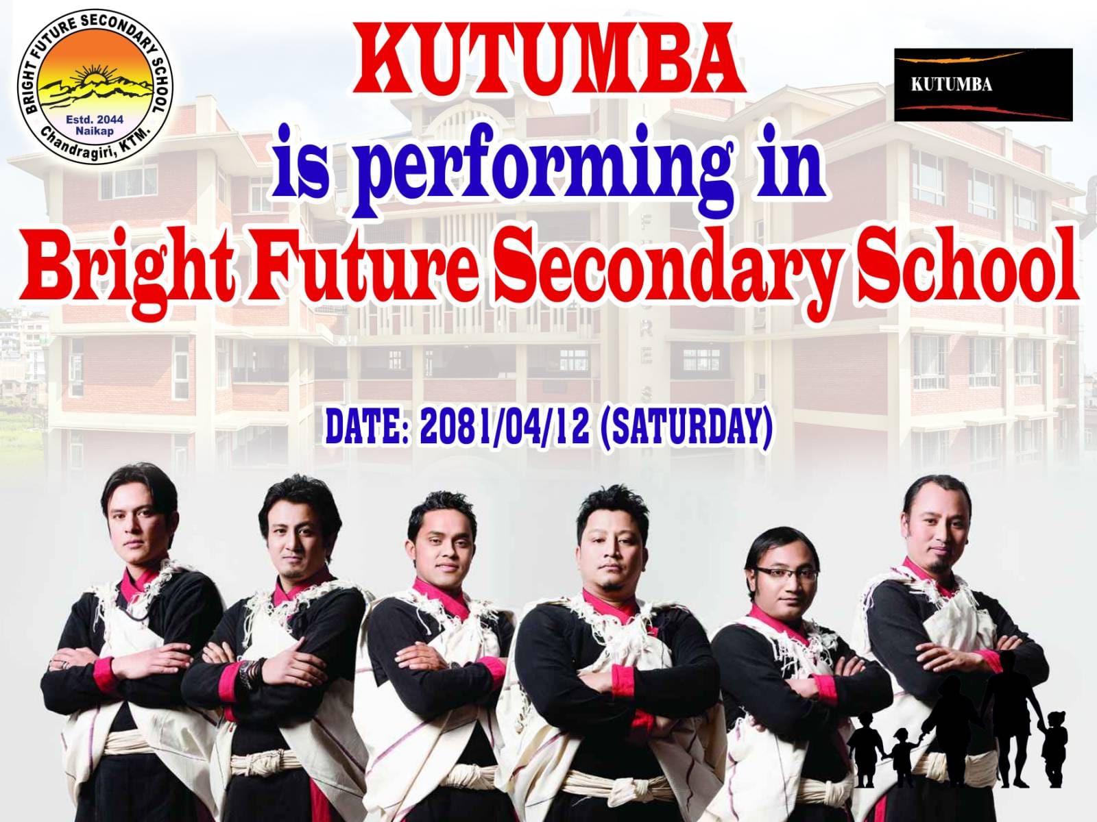 चन्द्रागिरि नगरपालिका-१४ नैकापस्थित ब्राइट फ्यूचर माविमा चर्चित सांगितिक समुह कुटुम्बले प्रत्यक्ष प्रस्तुति दिने भएको छ ।