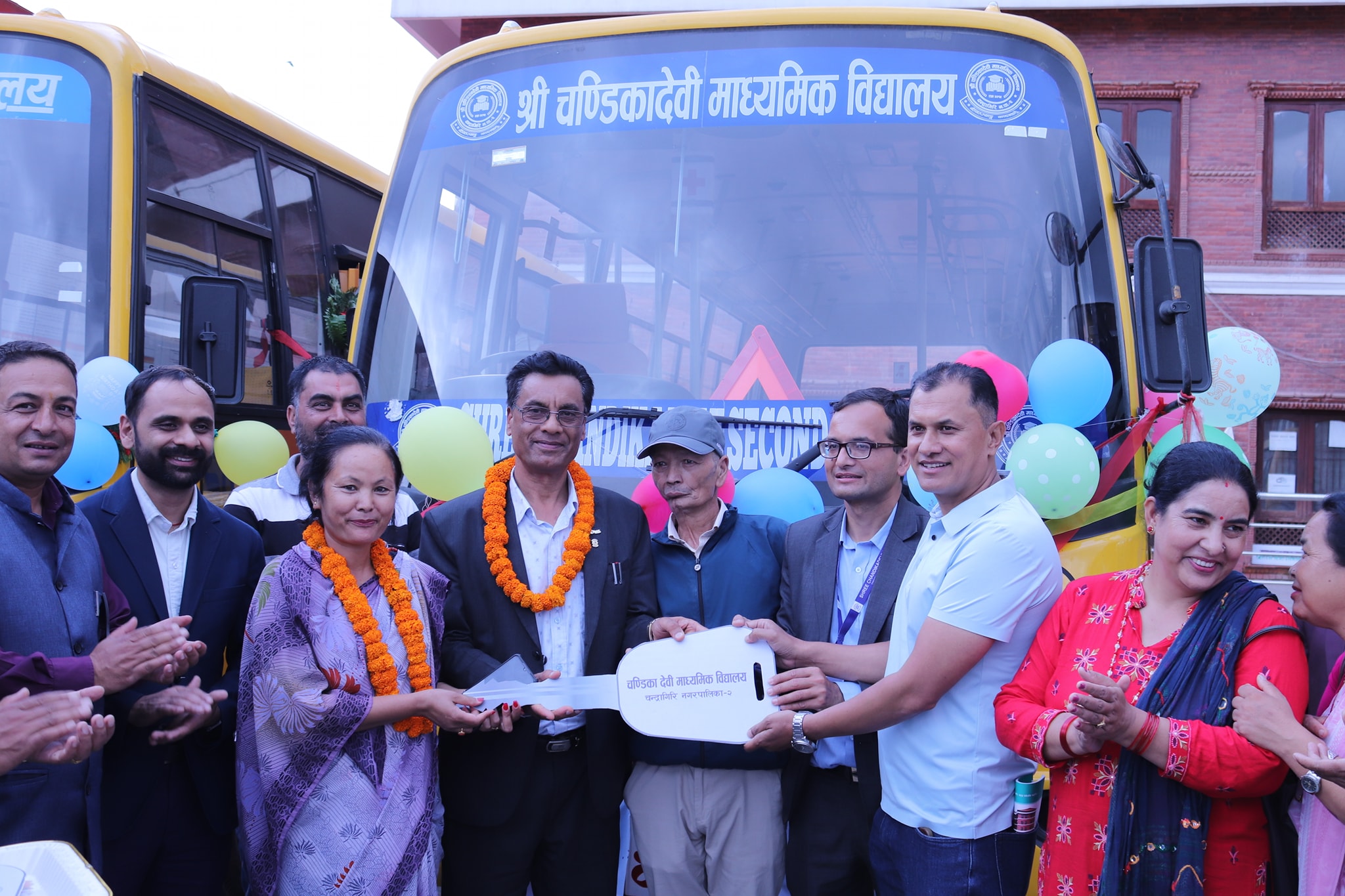 आइतबार एक कार्यक्रमका बीच नगरप्रमुख घनश्याम गिरीले चन्द्रागिरि नगरपालिका वडा नंं २ मा रहेका तीनवटा विद्यालयलाई बसको साँचो हस्तान्तर गरेका हुन् ।