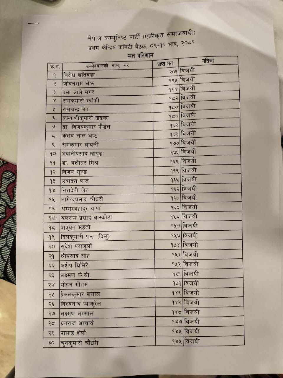 समग्रमा भने विरोध खतिवडाले सबैभन्दा धेरै मत पाएका छन् । उनले २०१ मत पाएका छन् ।