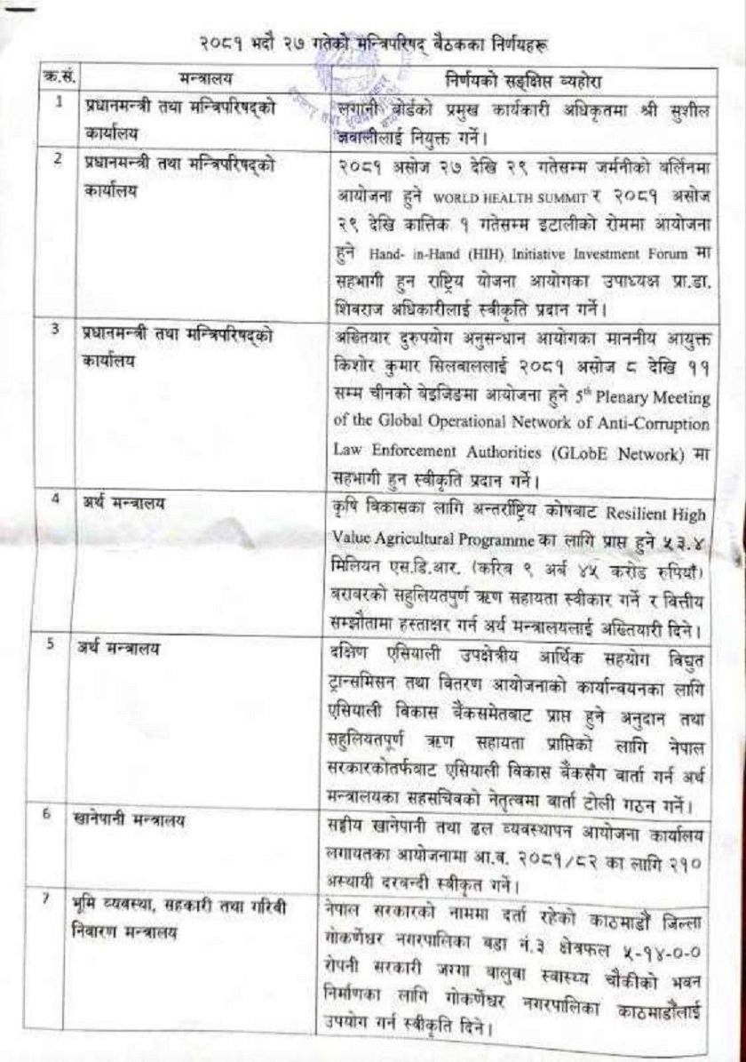 यस्ता छन पछिल्लोपटक बसेको मन्त्रिपरिषद् बैठकले गरेका १७ निर्णय