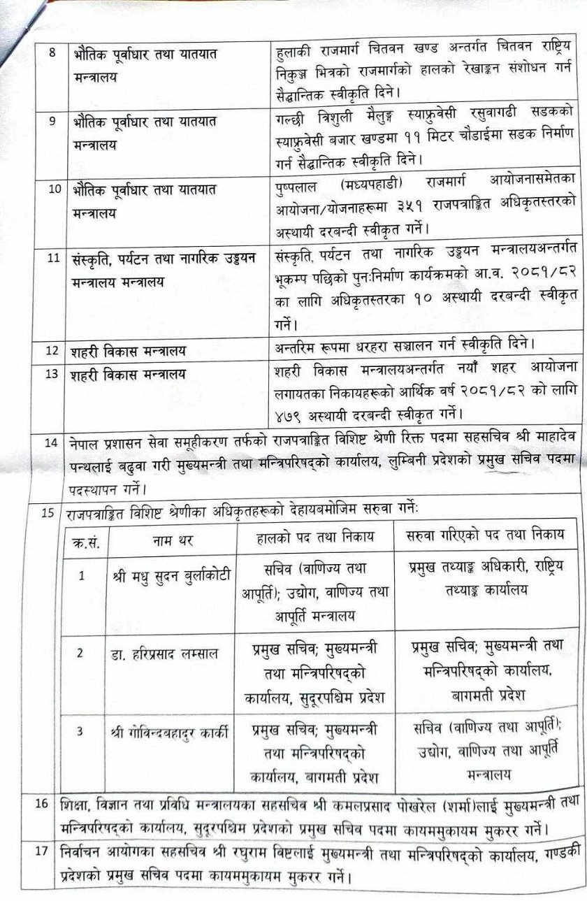 यस्ता छन् मन्त्रीपरिषद्का १७ निर्णयः