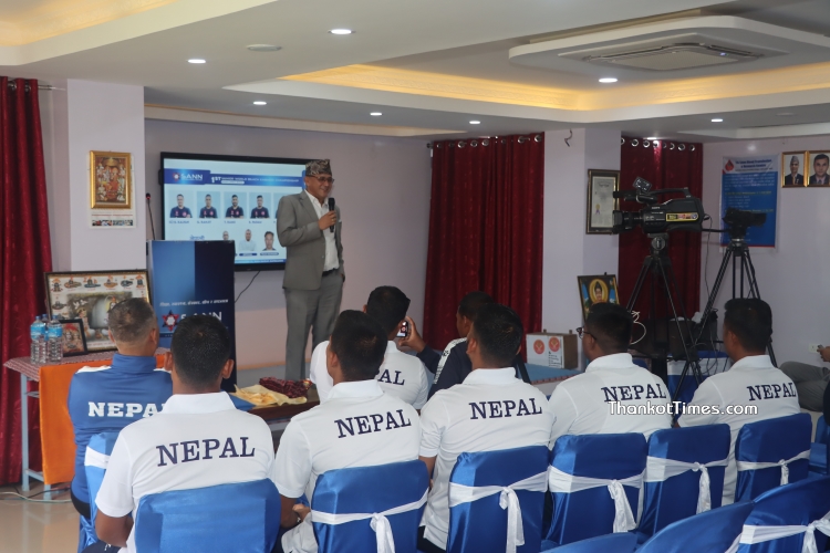 सान कलेजमा शुक्रबार बिहान आयोजित एक समारोहका बीच सो कलेजका अध्यक्ष डा. सुभाष घिमिरे तथा कलेजका प्रमुख कार्यकारी अधिकृत कर्ण बहादुर शाही लगायतले खेलाडी तथा व्यवस्थापकहरूलाई खादा लगाई शुभकामनासहित बिदाई गर्नुभएको हो ।