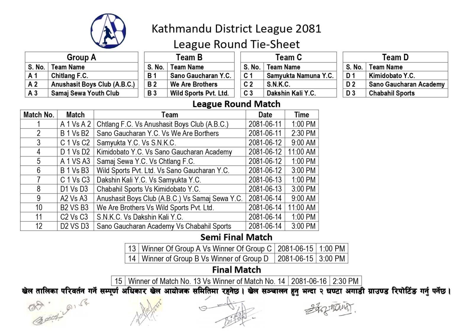 लिगको समुह क मा चित्लाङ फुटबल क्लब, अनुशासित ब्वाइज क्लब र समाज सेवा युवा क्लब रहेका छन् ।