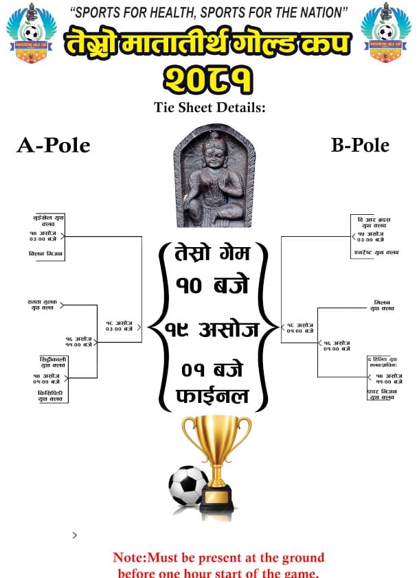तेस्रो मातातिर्थ गोल्डकपः आज तीनवटा खेल हुने, फाइनल खेल घटस्थापनाका दिन हुने