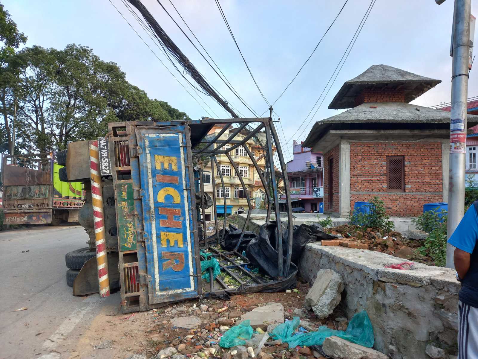 चित्लाङबाट तरकारी लिएर काठमाडौं तर्फ आउँदै गरेकाे ना ७ ख ५८२७ नम्बरको ट्रक मंगलबार राति सडकमै पल्टिएको हाे ।