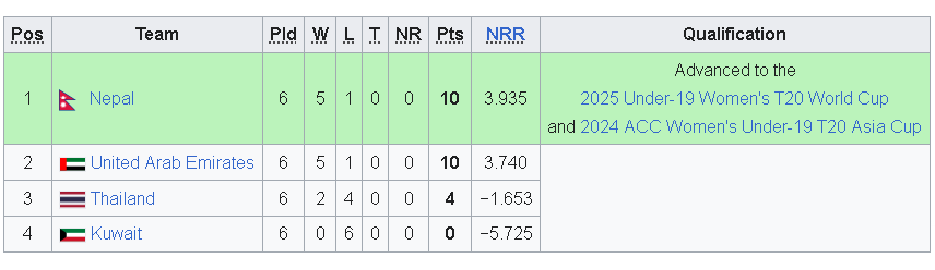 आज संयुक्त अरब इमिरेट्स (युएई)को अजमानमा भएको खेलमा आयोजक युएईमाथि आठ विकेटको ऐतिहासिक जीत निकाल्दै नेपाल विश्वकपका लागि छनोट भएको हो । नेपालले ६ खेलबाट १० अंक जोड्दै विश्वकपमा स्थान बनाएको हो । त्यस्तै युएईले पनि समान खेलबाट समान १० अंक जोडे पनि नेपाल नेट रनरेटमा अगाडि रहँदै विश्वकपमा स्थान बनाउन सफल भयो । यू–१९ विश्वकप क्रिकेट अर्को वर्ष मलेसियामा आयोजना हुँदैछ ।