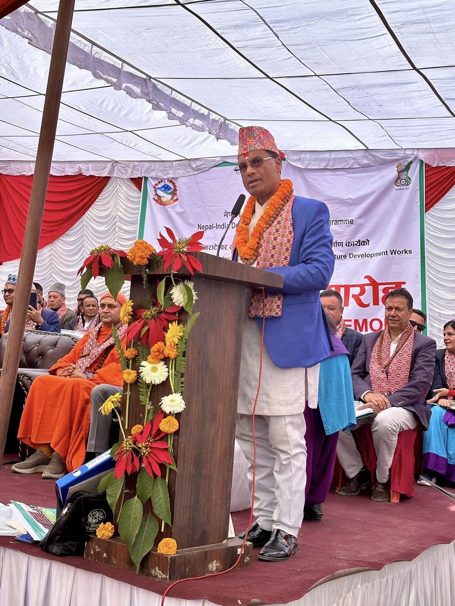 पूर्व निर्धारित मुहूर्तअनुसार सोमबार बिहान चन्द्रागिरि नगरका मेयर घनश्याम गिरी र काठमाडाैंस्थित भारतीय दुतावास नियोग उपप्रमुख प्रसन्न श्रीवास्तव लगायतले ती पूर्वाधार निर्माणको शिलान्यास गरेका हुन् ।