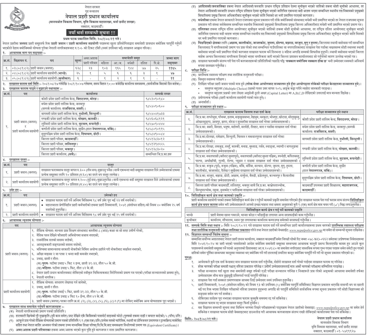 नेपाल प्रहरीको विभिन्न पदमा नयाँ भर्ना खुल्यो (सूचनासहित)
