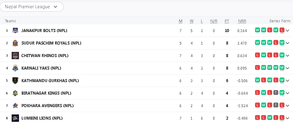 चितवनले जनकपुरलाई हराएपछि विराटनगर किंग्स र पोखरा एभेन्जर्स भने आफ्नो अन्तिम लिग खेल नै प्लेअफ होडबाट बाहिरिएका छन् । यस्तै लुम्बिनी लायन्स यसअघि नै लिग चरणबाट बाहिरिसकेको छ